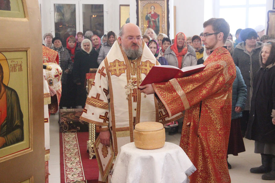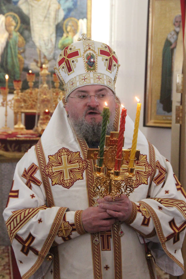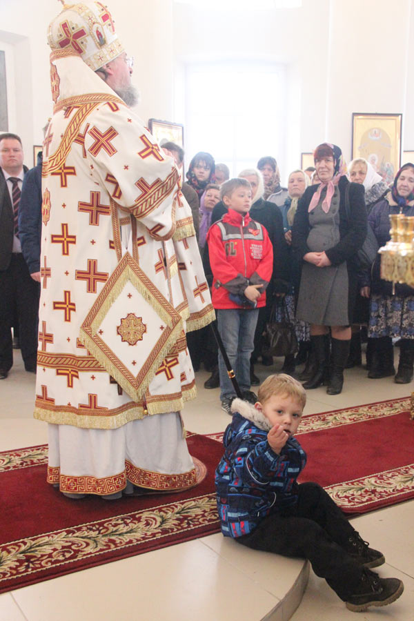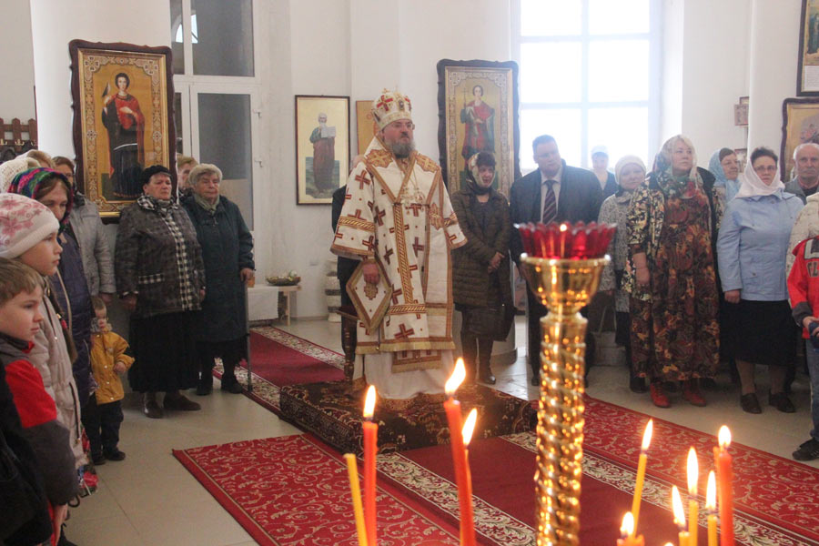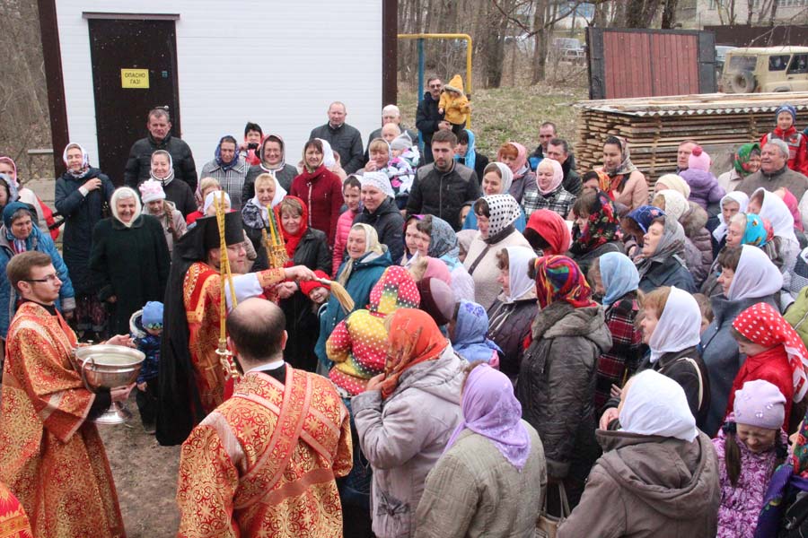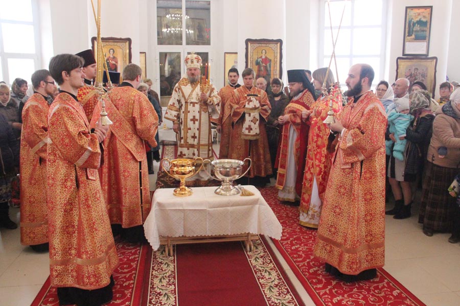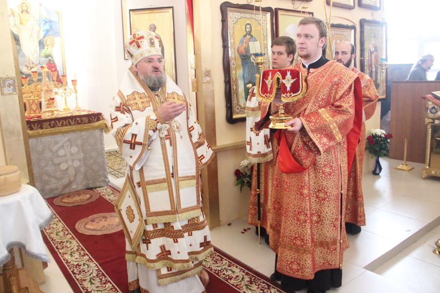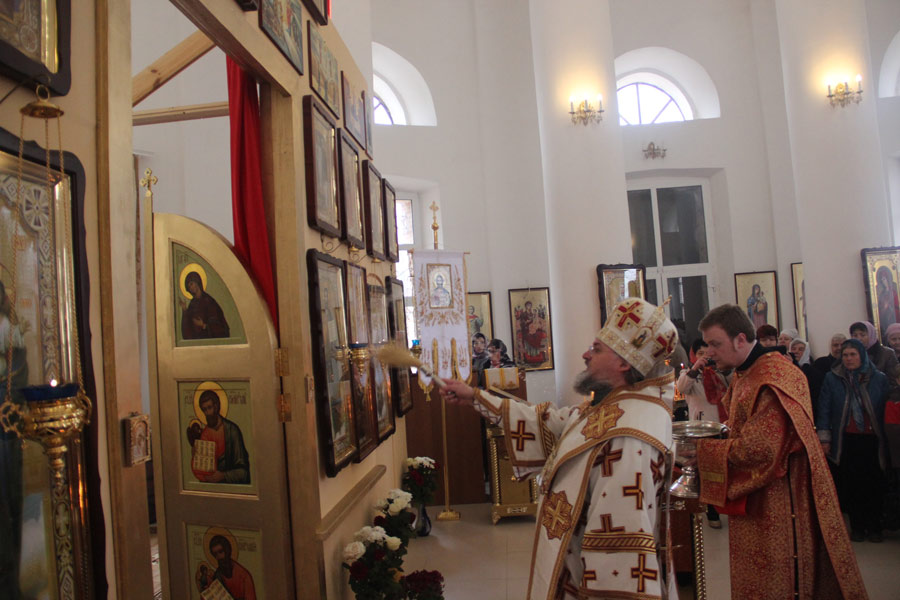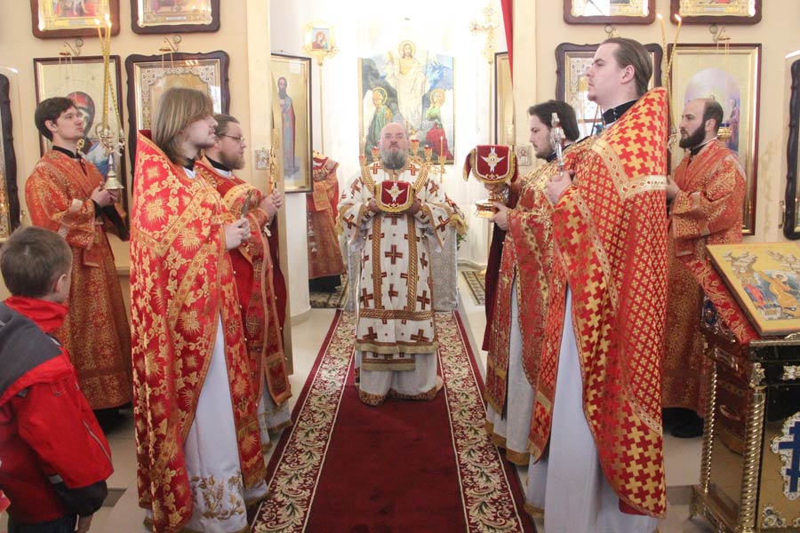 Архипастырю сослужили: протоиерей Антоний Хатунцев, иеромонах Никон (Харьков) — настоятель храма, иерей Виктор Носов, иерей Кирилл Кислов, диакон Евгений Ковригин и диакон Евгений Васильев. По отпусте литургии состоялся праздничный пасхальный крестный ход вокруг храма в завершении которого владыка обратился к богомольцам с архипастырским словом.