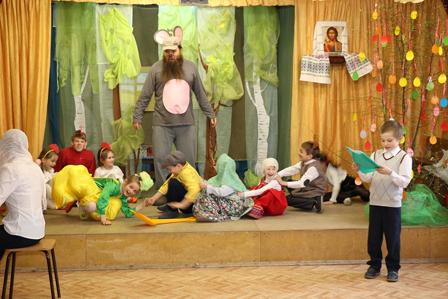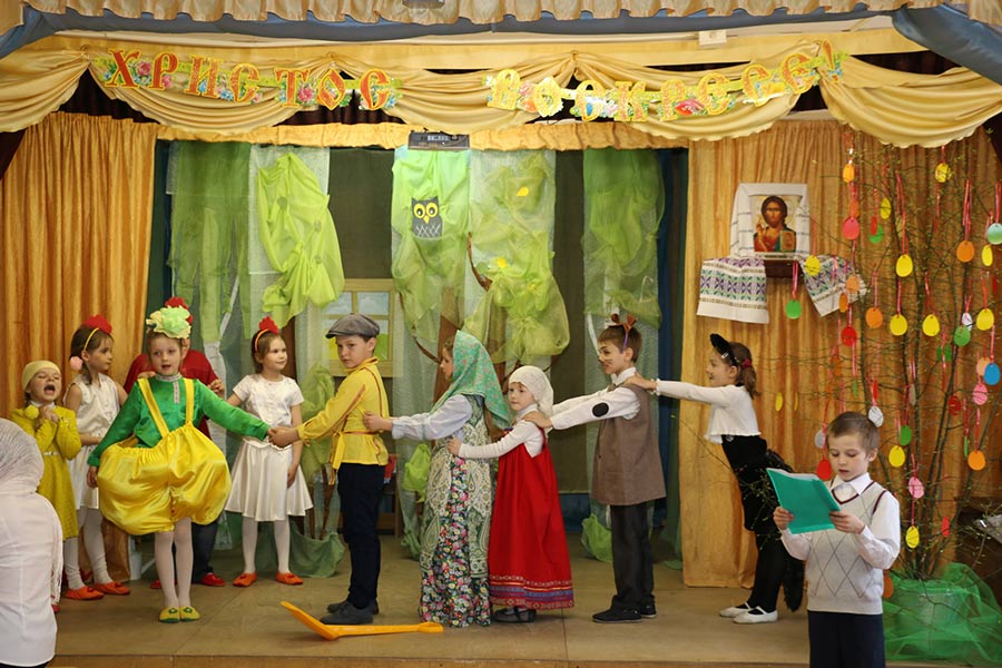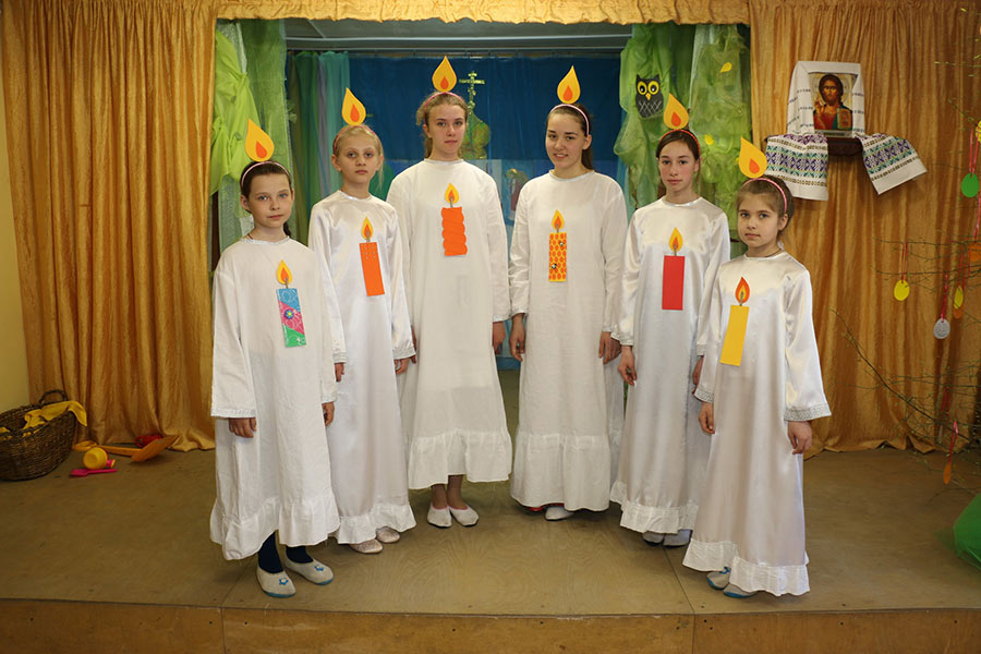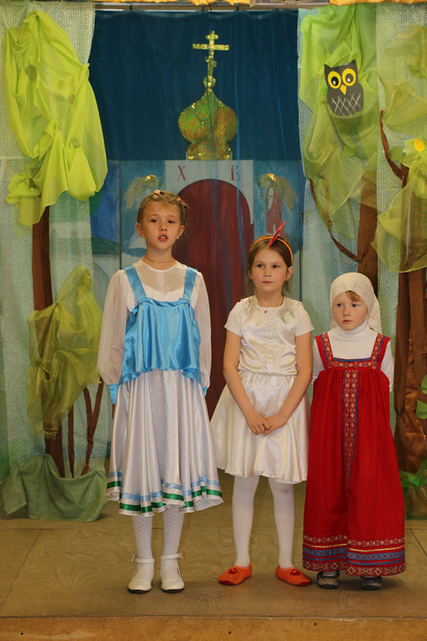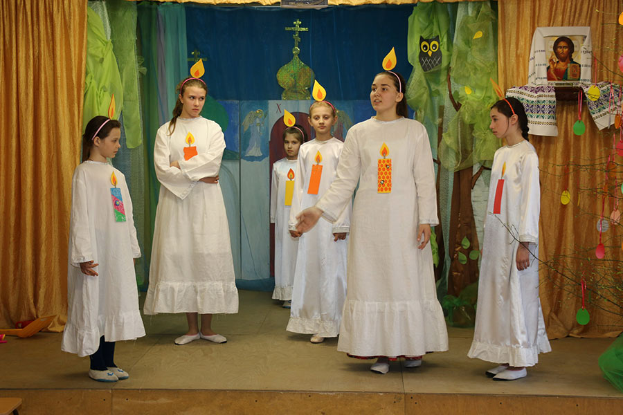 В этом году концерт состоял из трех выступлений. Старшая группа подготовила поучительную сценку «Свечечка». В этой сценке поведение свечек на подсвечнике указывает на то, чем порою наполнены наши души и мотивирует зрителя задуматься о том с каким сердцем нужно приходить в храм и возносить свои молитвы Богу.