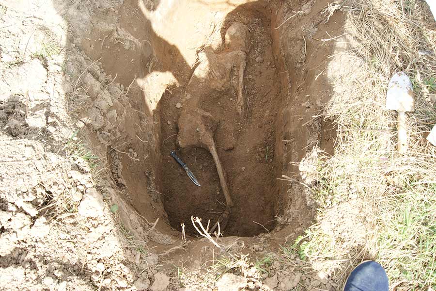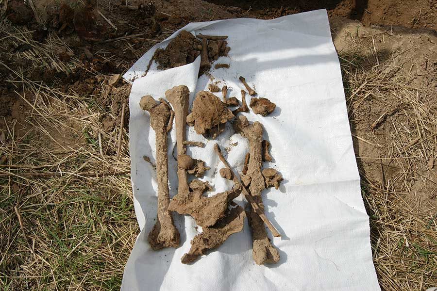 По словам членов отряда, в этом месте проходила линия фронта, и советские части были накрыты минометным огнем. Об этом свидетельствует большое количество хвостовиков от мин-крылаток, а также останки отдельных частей тел.
