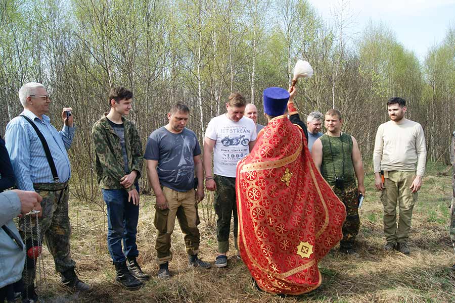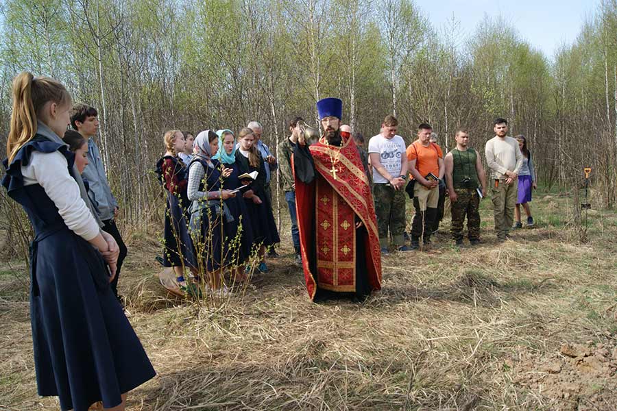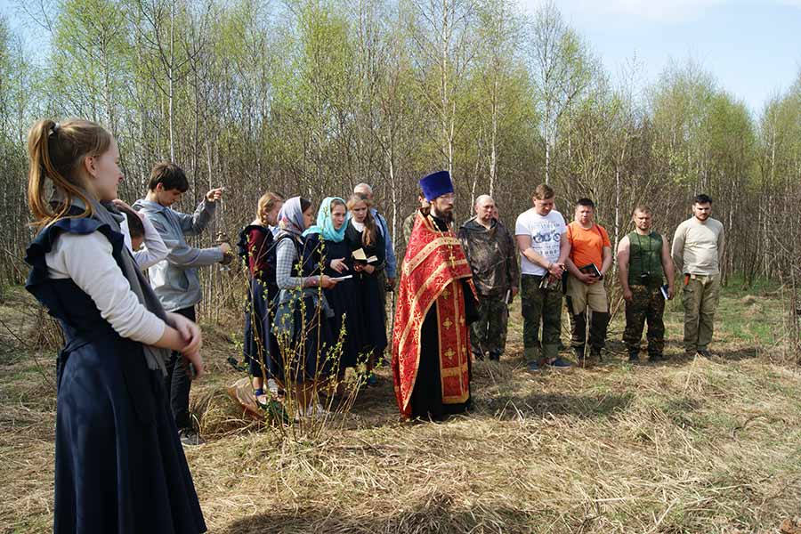 Вот и сейчас, 29 апреля учащиеся седьмого и восьмого класса Православной гимназии во главе с директором иереем Антонием Луниным прибыли в район деревни Ефимцево, где расположился полевой лагерь для проведения очередной вахты.