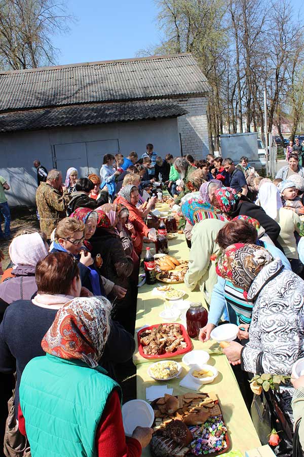После божественной литургии, верующие прошли крестным ходом, вокруг храма и совершили славление мироносицам. В своей проповеди настоятель подчеркнул важность подвига мироносиц и поблагодарил женщин за их служение. Воспитанники воскресной школы и работники районного Дома культуры приготовили прихожанам небольшой праздничный концерт, который завершился общей трапезой, главным блюдом которой был большой казан с пловом.