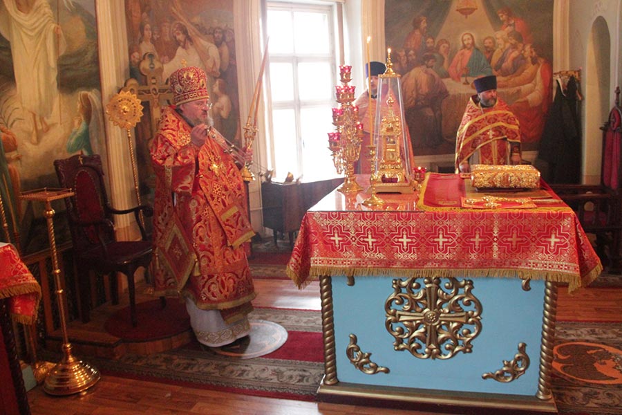 По отпусте литургии священнослужители совершили благодарственный молебен Господу Богу за дарование Победы в Великой Отечественной войне 1941–1945 годов и заупокойная лития о почивших воинах. В завершении богослужения владыка обратился к молящимся с архипастырским словом.