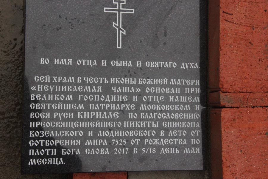 В Козельской епархии будет построен храм в честь иконы Божией Матери «Неупиваемая Чаша»
