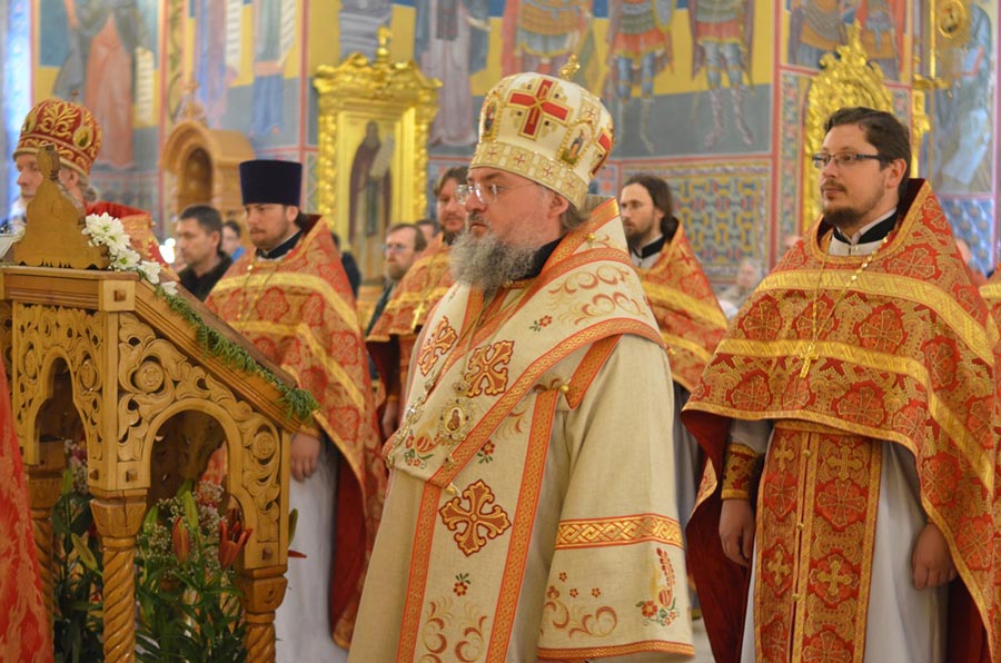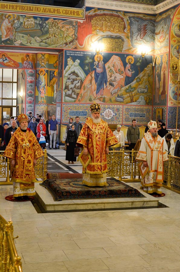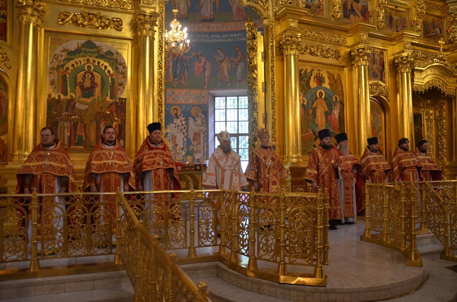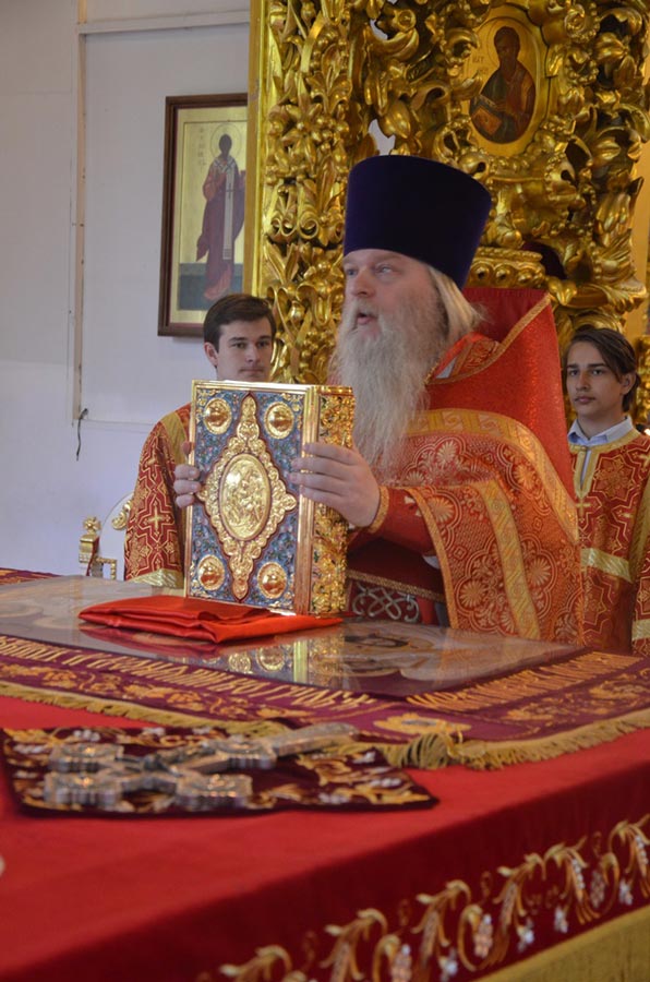 В центре храма пред иконой праздника, собором духовенства, было пропето величание празднику. Затем Высокопреосвященнейший владыка обратился к пастве с проповедью: