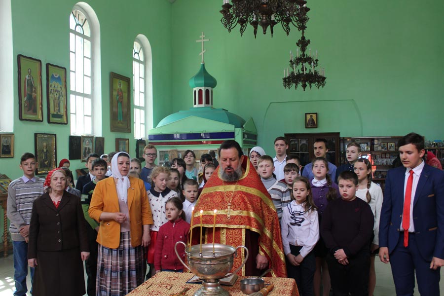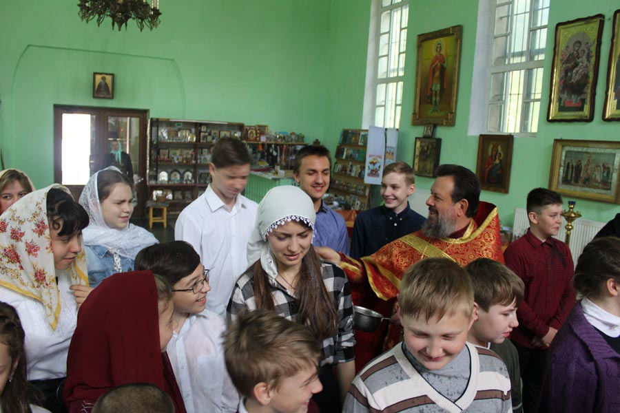 Отец Василий отслужил благодарственный молебен за успешно прошедший год обучения, по завершении которого батюшка окропил всех детей и родителей святой водой.
