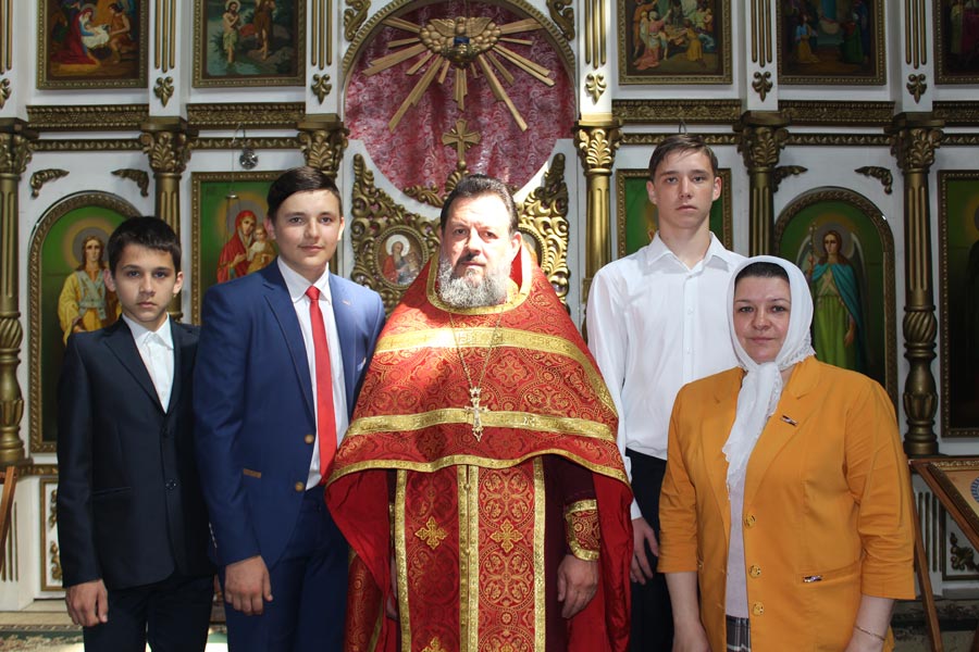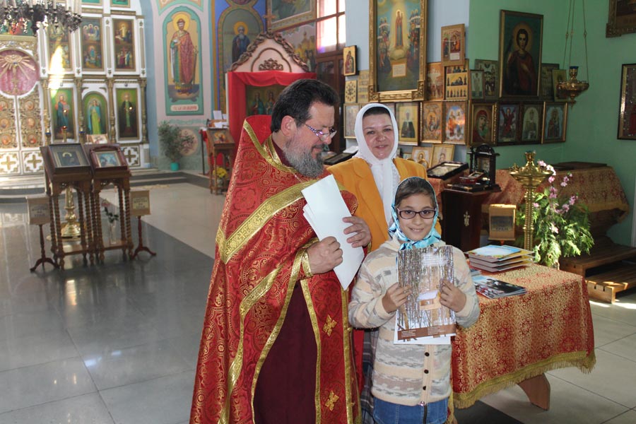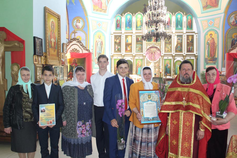 В конце праздника настоятель храма протоиерей Василий Биляк поздравил выпускников с окончанием учебного года, переходом ребят на следующую ступеньку их жизни. Батюшка вручил выпускникам этого года свидетельство об окончании Воскресной школы и пожелал, чтобы они, выйдя из стен школы, никогда не забывали то, чему их учили в воскресной школе, пожелал помощи Божией в сдаче экзаменов в общеобразовательной школе и поступить в учебные заведения.