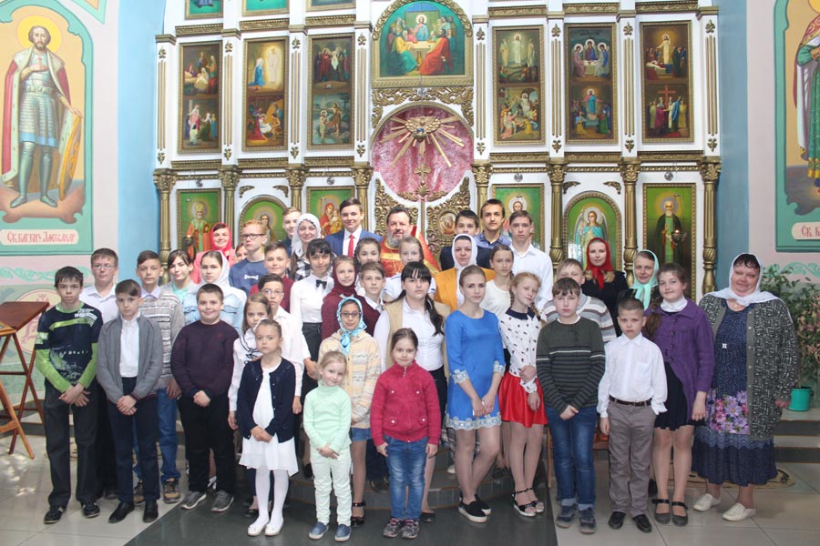 24 мая в день памяти Равноапп. Мефо́дия и Кири́лла, учи́телей Слове́нских, в храме Преподобного Сергия Радонежского г. Людиново, после Божественной литургии, по благословению благочинного 6-го округа настоятеля храма протоиерея Василия Биляк прошел праздник «Последнего звонка», посвященный выпуску детей воскресной школы «Радонеж».
