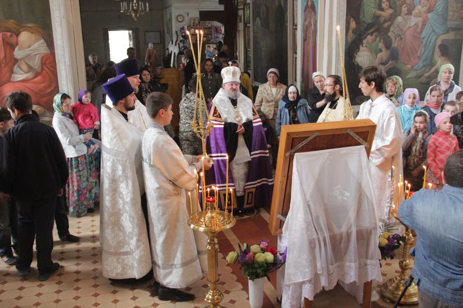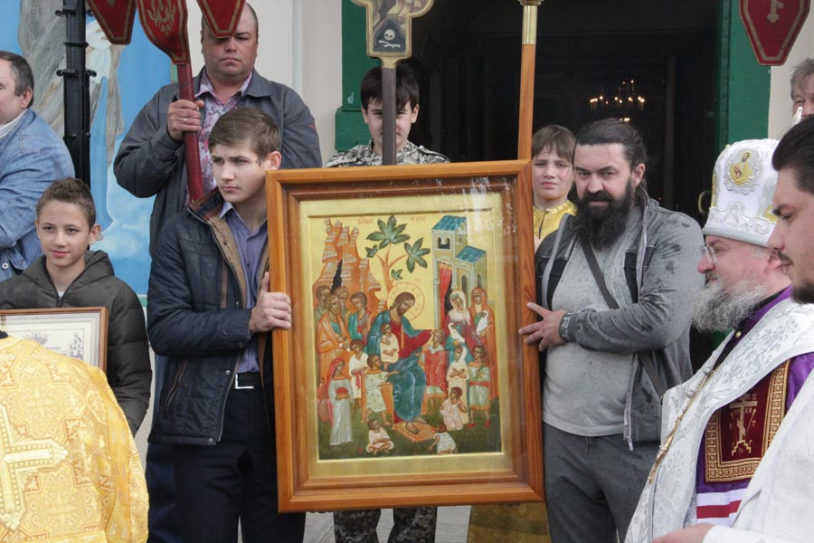 В этот день в город была привезена икона «Благословение Спасителем детей» из Преображенского храма поселка Полотняный Завод Калужской епархии. Образ сопровождал иерей Ярослав Клоков.