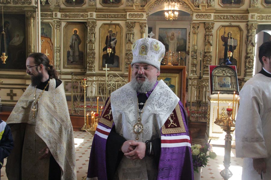 По окончании богослужения владыка обратился к молящимся с проповедью и раздал всем небольшие иконки Владимирской иконы Божией Матери.