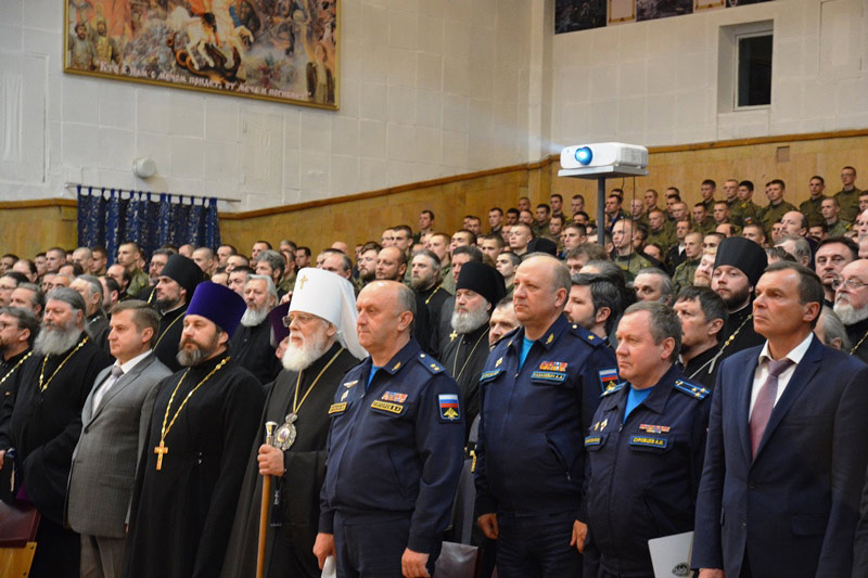 Перед началом сбора в Воскресенском кафедральном соборе города Твери была совершена Божественная литургия, на которой присутствовали преподаватели и курсанты Военной академии ВКО.