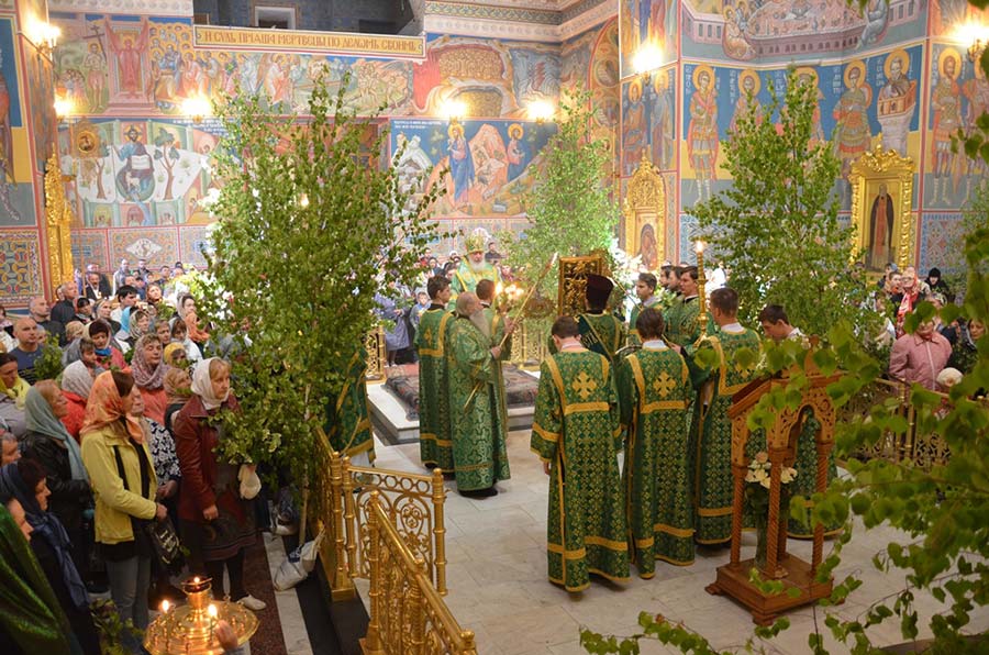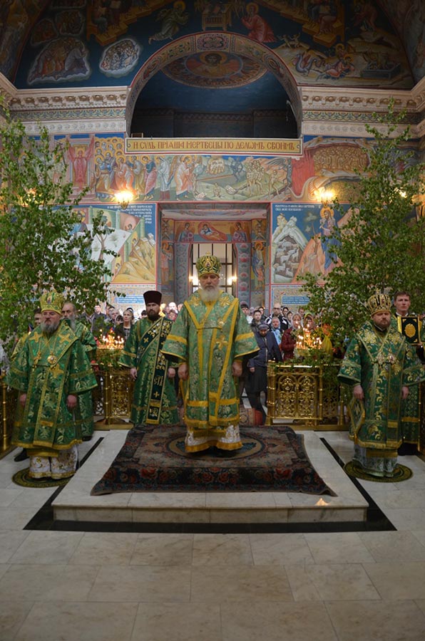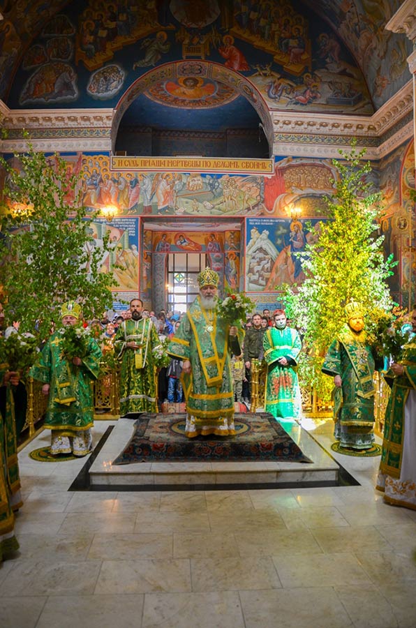 4 июня 2017 года. День Святой Троицы. Пятидесятница. В Свято-Троицком кафедральном соборе города Калуги прошли праздничные богослужения. Божественную литургию на престольный день возглавил митрополит Калужский и Боровский Климент, глава Калужской митрополии.