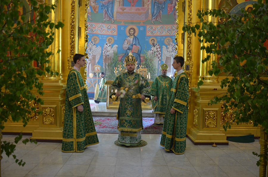 По окончании всех молитвословий владыка Климент поздравил паству с Днем Святой Троицы и престольным праздником собора.