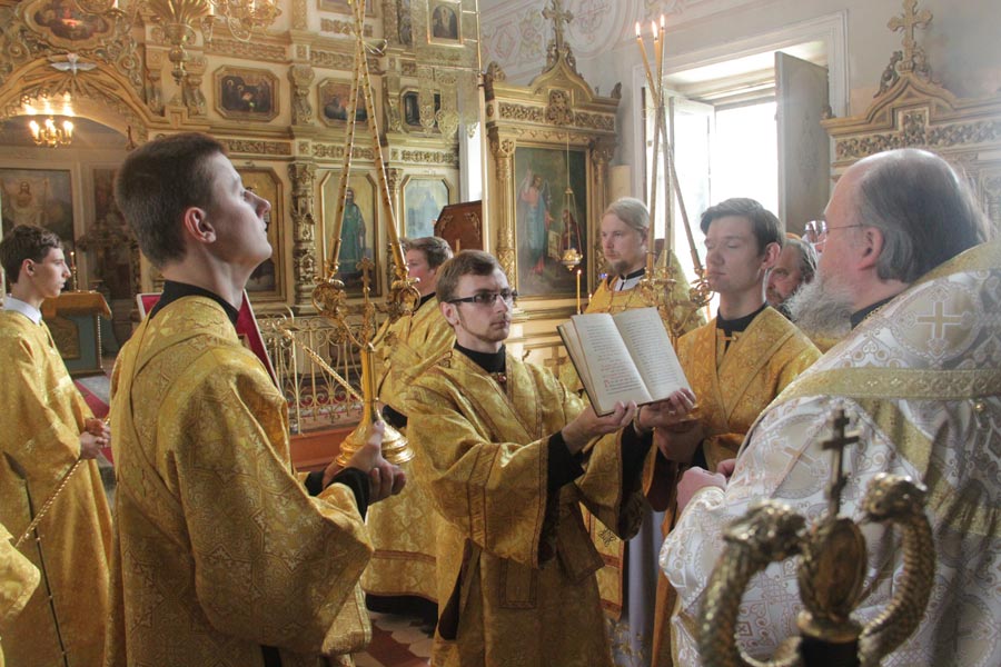 По традиции, этот торжественный день начался с Божественной литургии в Благовещенском храме города Козельска, которую возглавил епископ Козельский и Людиновский Никита в сослужении настоятеля храма, духовника гимназии иерея Сергия Барыкина, иерея Антония Лунина – директора школы, протоиерея Павла Морозова, протоиерея Антония Хатунцева и диакона Евгения Васильева.