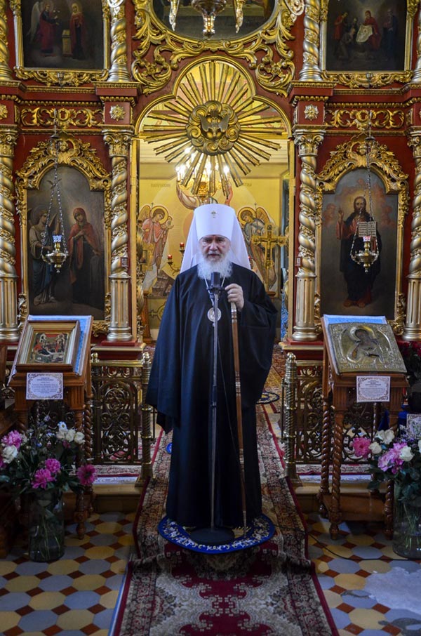 После отпуста Литургии митрополит Климент вознес молитву перед чудотворным образом Божией Матери, именуемом «Ломовская», затем Владыка поздравил настоятельницу монастыря игуменью Феофилу с сестрами и всех богомольцев с праздником и произнес проповедь.