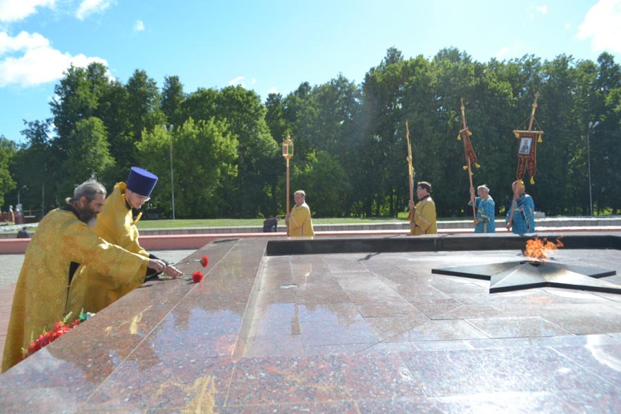 22 июня 2017 года, в 76-ю годовщину начала Великой Отечественной войны, рано утром крестный ход из Казанского собора проследовал через аллею Героев на площадь Победы, где у Поклонного Креста была совершена заупокойная лития в память о всех погибших в Великой Отечественной войне, с возложением венка.