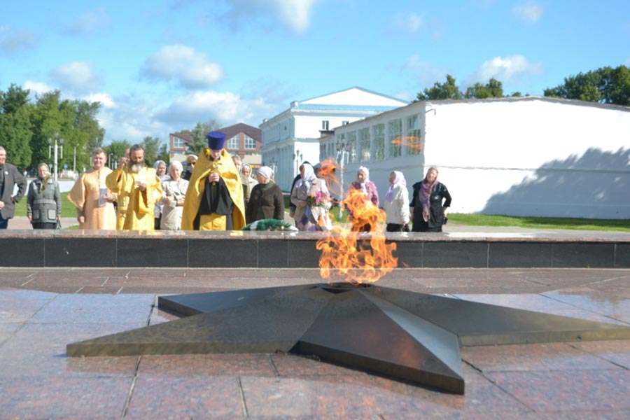 По окончании крестного хода в Казанском соборе совершили Божественную литургию, за которой вознесли заупокойные молитвы.