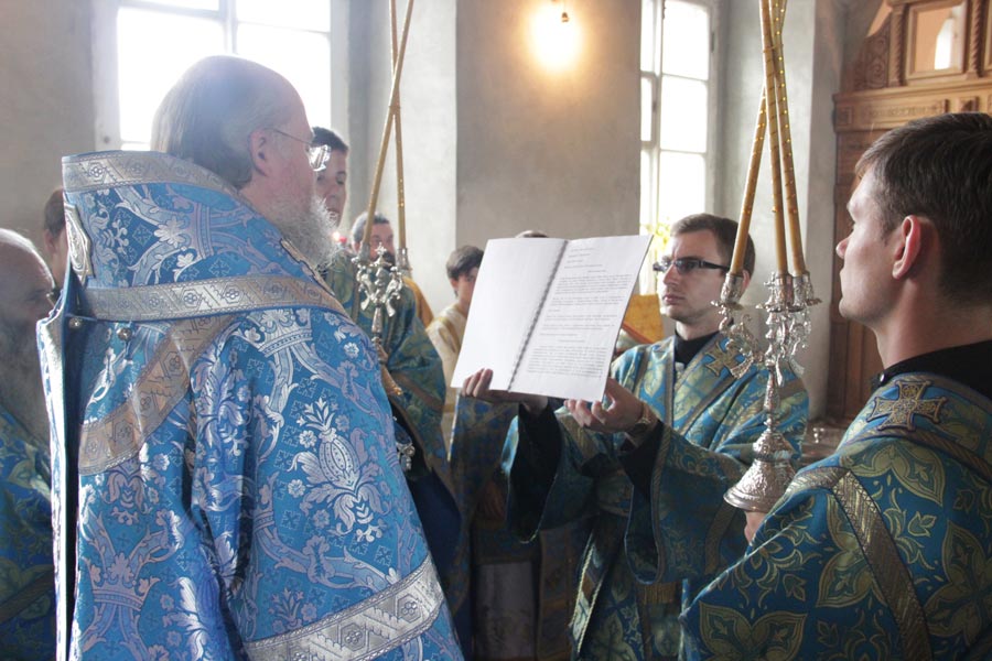 Архипастырю сослужили: настоятель монастыря Спаса Нерукотворного пустынь игумен Михаил (Семенов), благочинный округа протоиерей Владимир Бахаев, протоиерей Антоний Хатунцев, иерей Евгений Мягков, иерей Павел Никитин, настоятель храма иерей Антоний Лунин, диакон Евгений Ковригин, диакон Тихон Худяков и диакон Евгений Васильев.