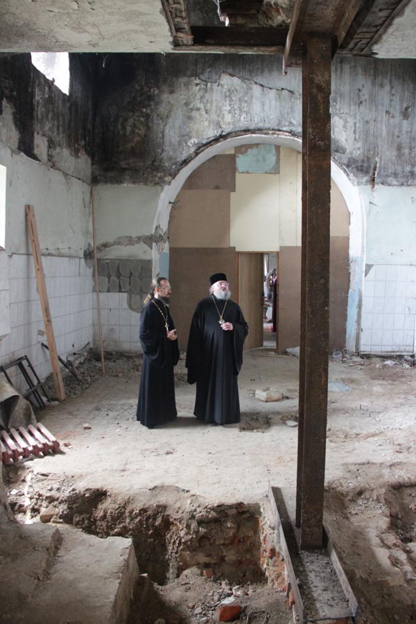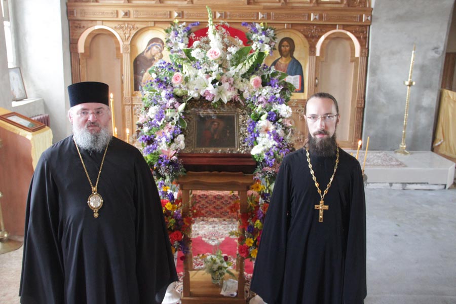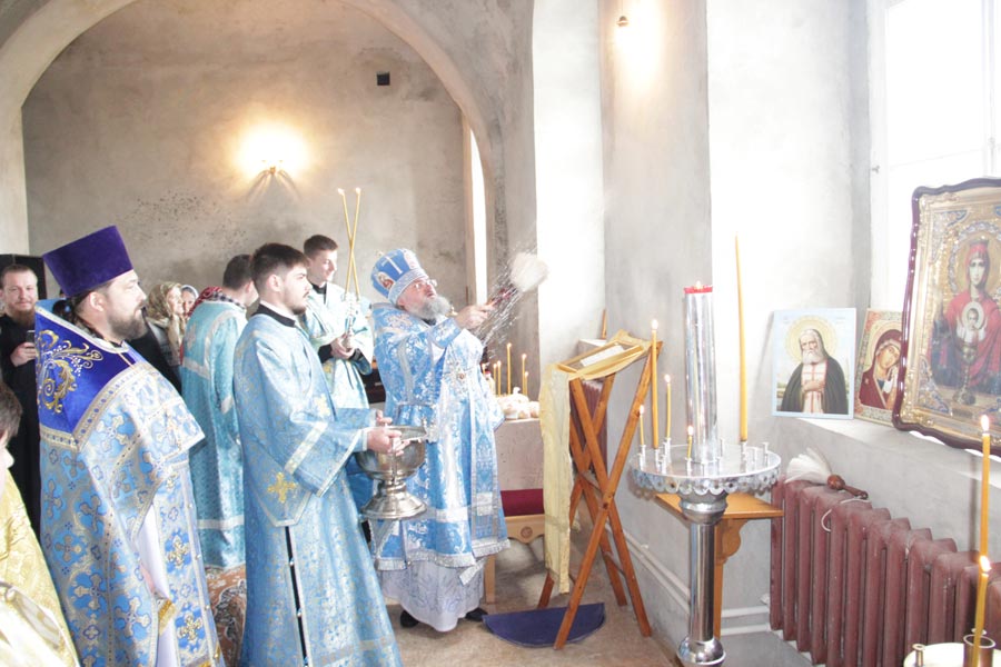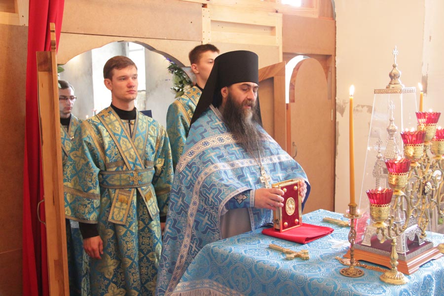 Епископ Козельский и Людиновский Никита возглавил малое освящение и Божественную литургию в приделе, посвященном празднуемому образу Царицы Небесной восстанавливающегося храма в честь Вознесения Господня города Козельска.