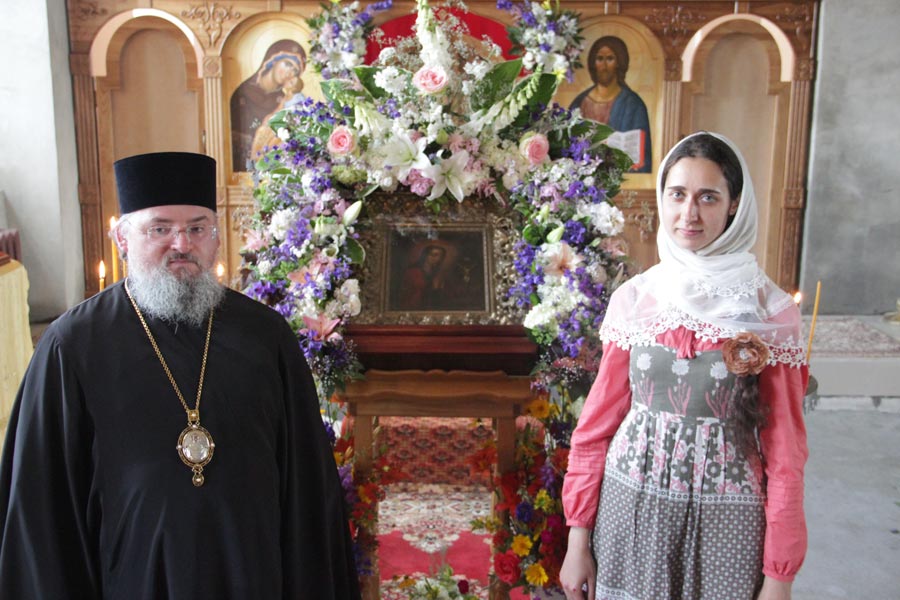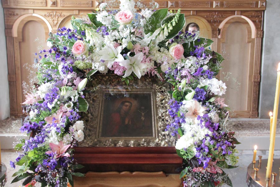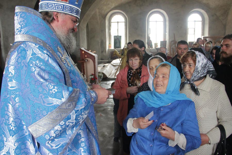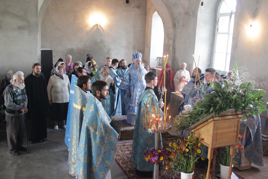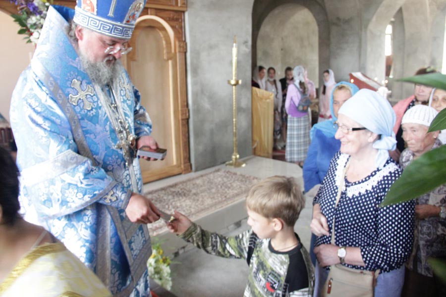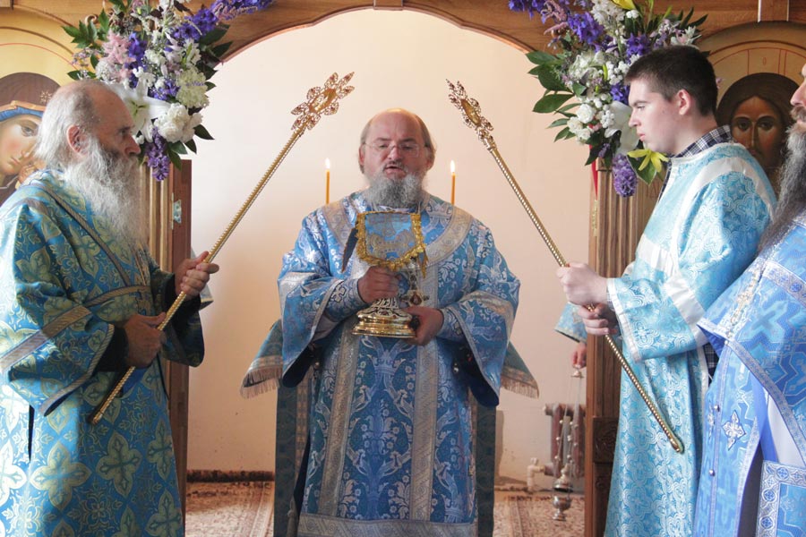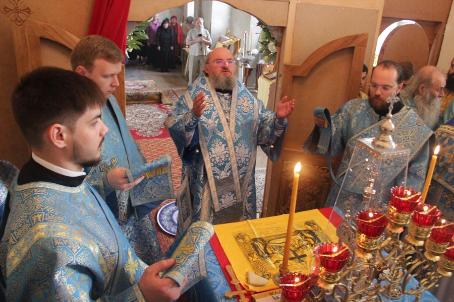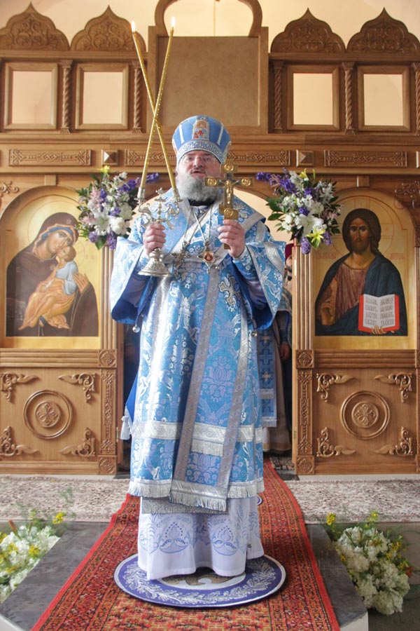 По отпусте литургии священнослужители совершили славление пред образом Божией Матери, а затем, вознеся молитву Матери Божией, владыка обратился к богомольцам с архипастырским словом.