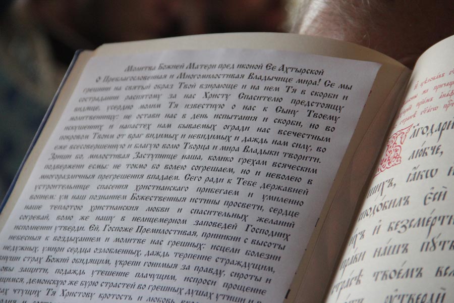 Проснувшись, я передал об этом отцу Амвросию. Начались поиски по всем церквам Козельска, но иконы Ахтырской Божией Матери нигде не находили. Искали и в Вознесенской церкви. После долгих и безуспешных поисков священник той церкви отец Димитрий открыл сию икону на чердаке церкви, лежащую в пыли и мусоре. Святая икона была тогда же принесена торжественно в Оптину пустынь, а я, приложившись к ней после молебна, получил облегчение от недуга и вскоре выздоровел совершенно». После многих чудес от сей иконы люди с верою приходили к ней…»