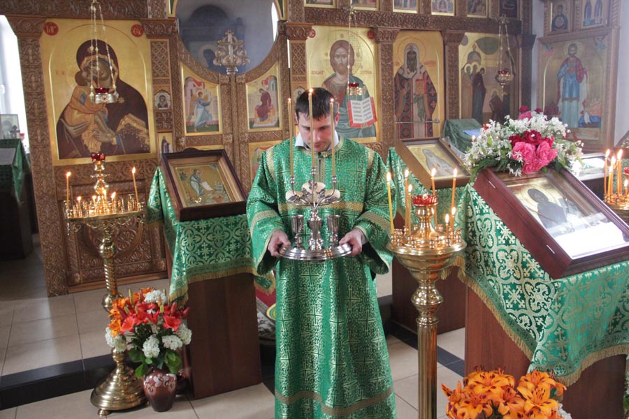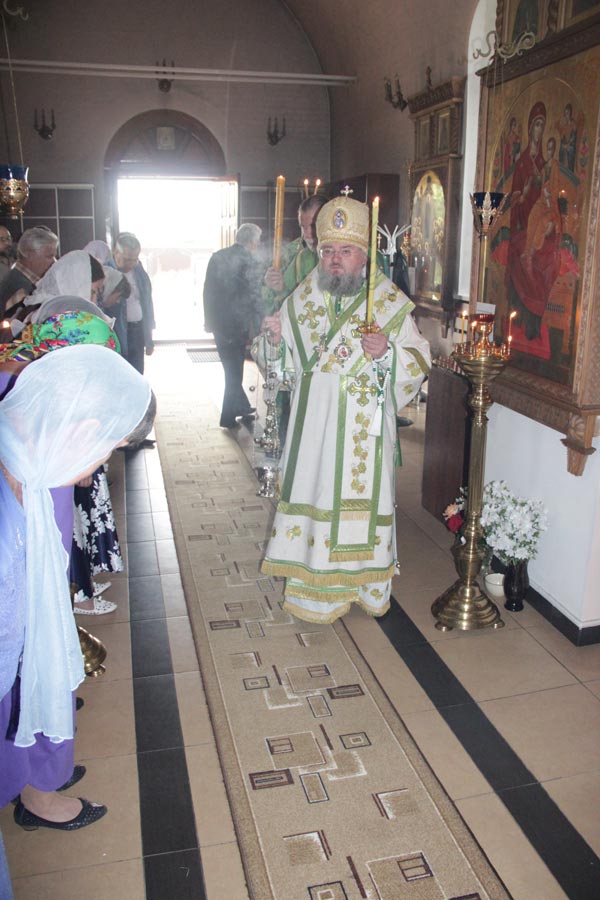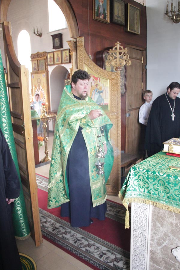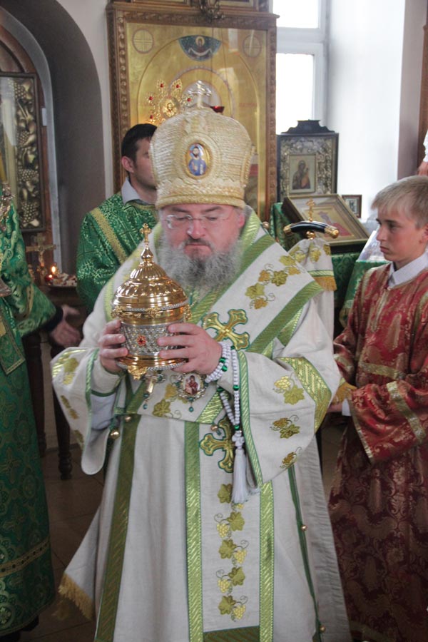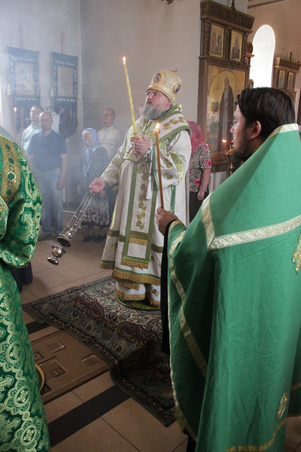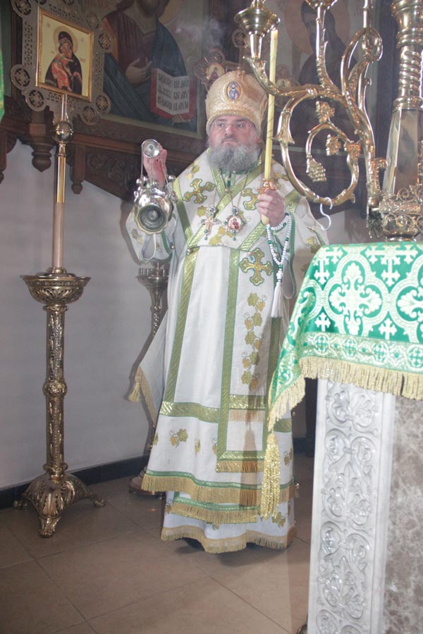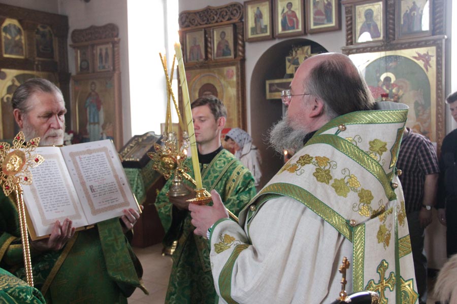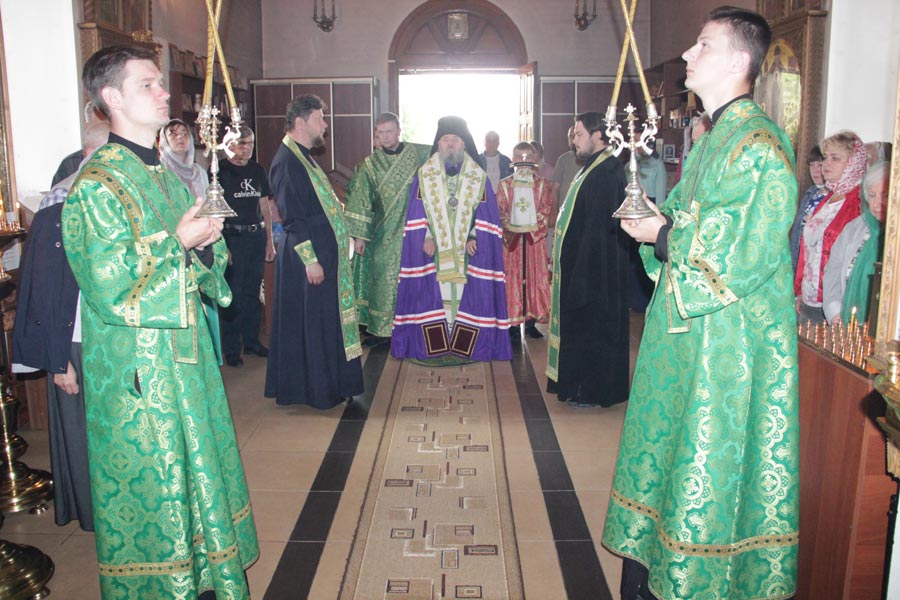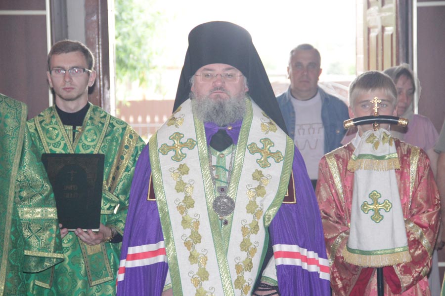 Его Преосвященству сослужили: настоятель храма протоиерей Василий Гаднай, протоиерей Антоний Хатунцев, диакон Евгений Ковригин и протодиакон Василий Савельев.