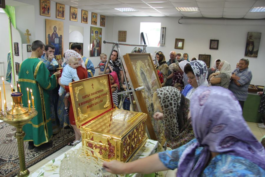 Утром 28 июля в 8:30 в храме Успения Пресвятой Богородицы с.Хвастовичи собором духовенства 4-го благочиния была совершена Божественная Литургия, по окончании которой был отслужен молебен с акафистом Божией Матери. Далее чудотворная икона и ковчег с мощами новомучеников проследовали в п. Дудоровский, Ульяновского района.