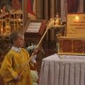 В Успенском кафедральном соборе города Козельска состоялась встреча чудотворного образа Калужской Божией Матери и ковчега с частицами мощей святых новомучеников и исповедников Церкви Русской, а затем Божественная литургия. Богослужение возглавил епископ Козельский и Людиновский Никита.