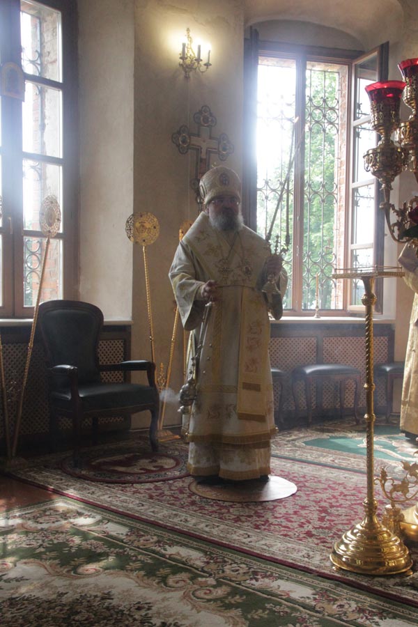 По отпусте литургии священнослужители совершили молебен Пресвятой Богородице и новомученикам и исповедникам Российским, в завершении которого, вознеся молитвы Матери Божией и святым страстотерпцам, владыка обратился к богомольцам с архипастырским словом.