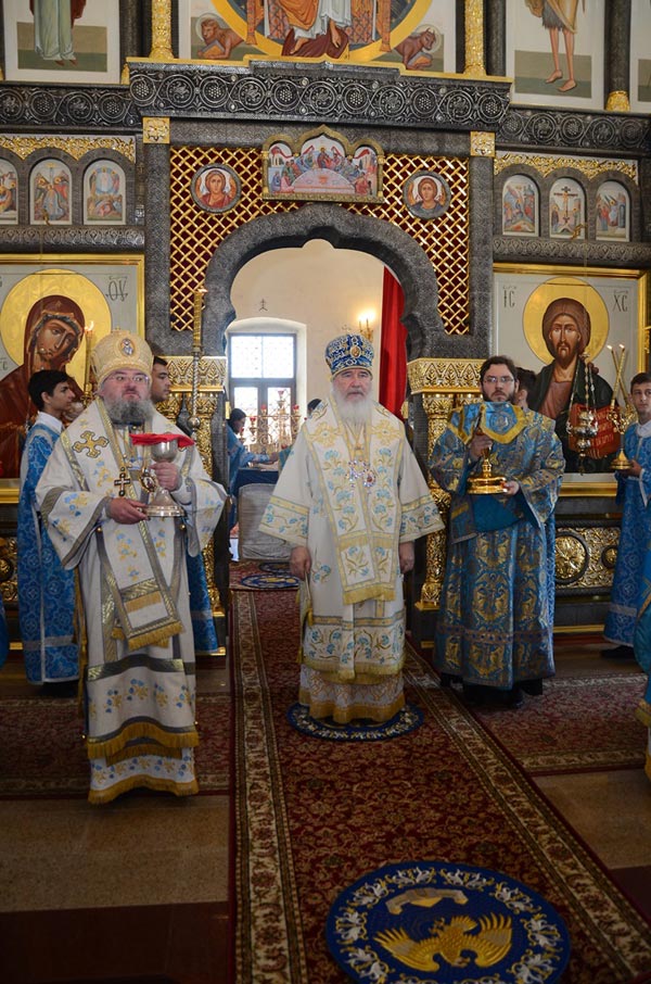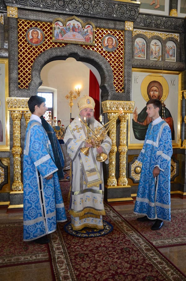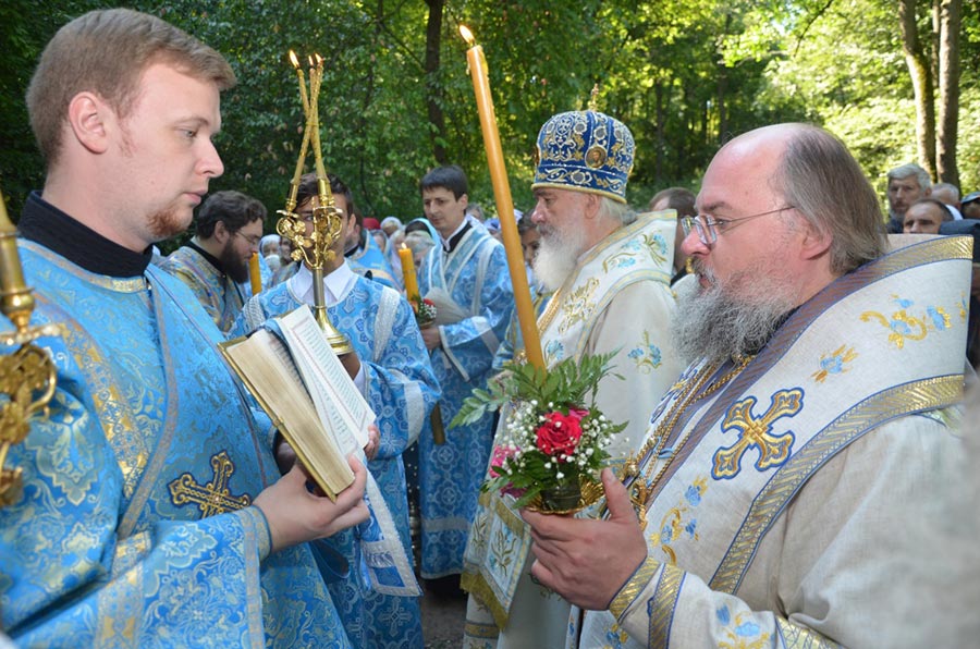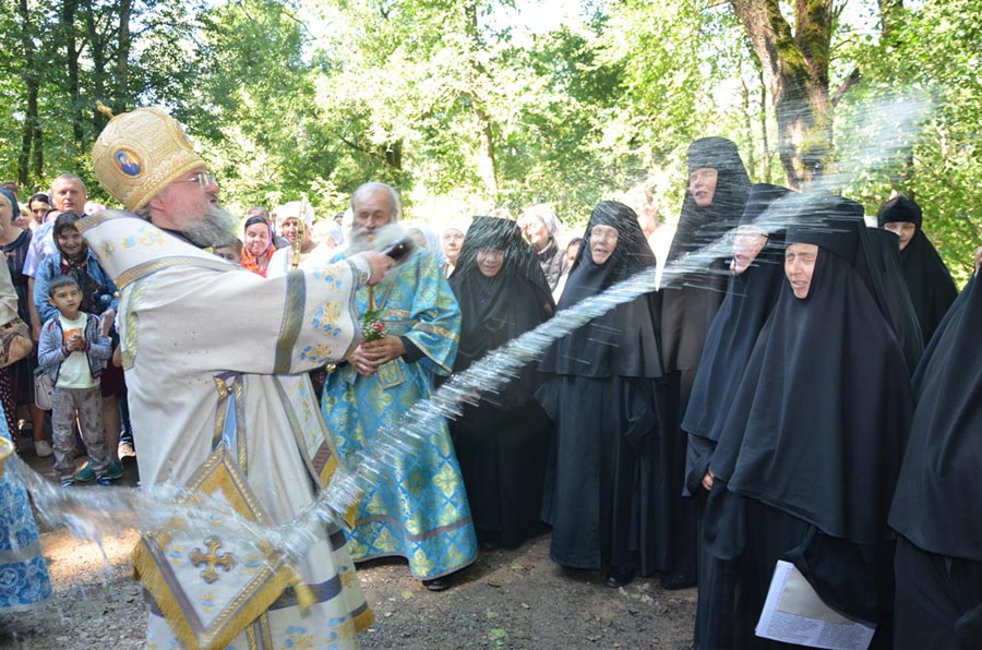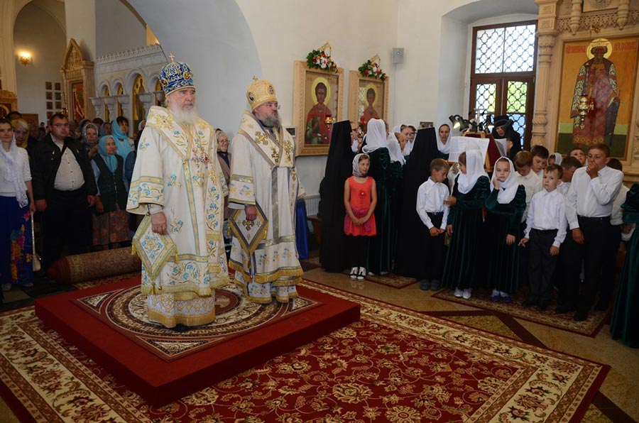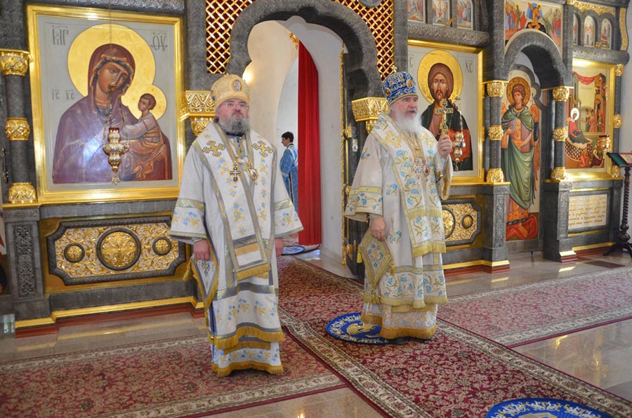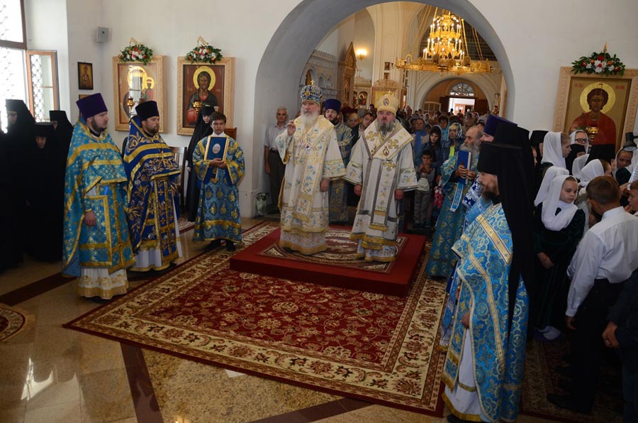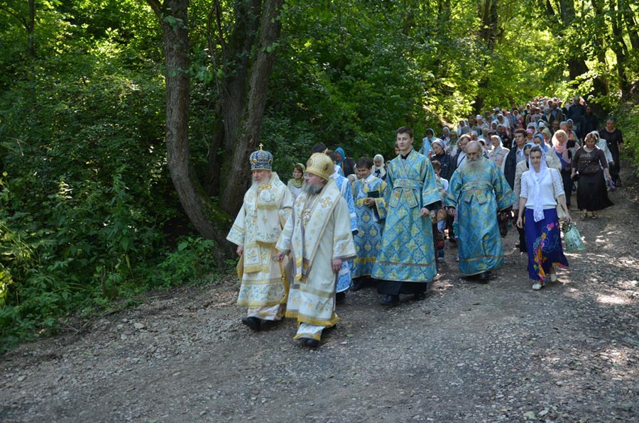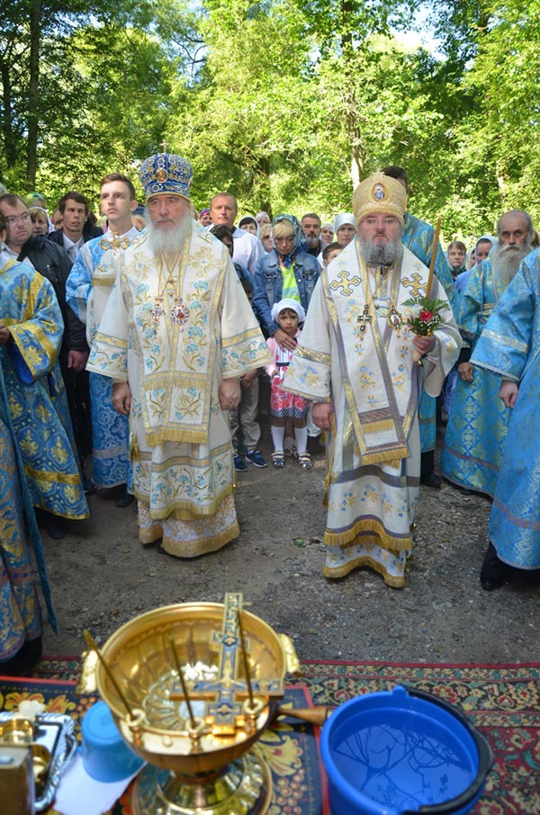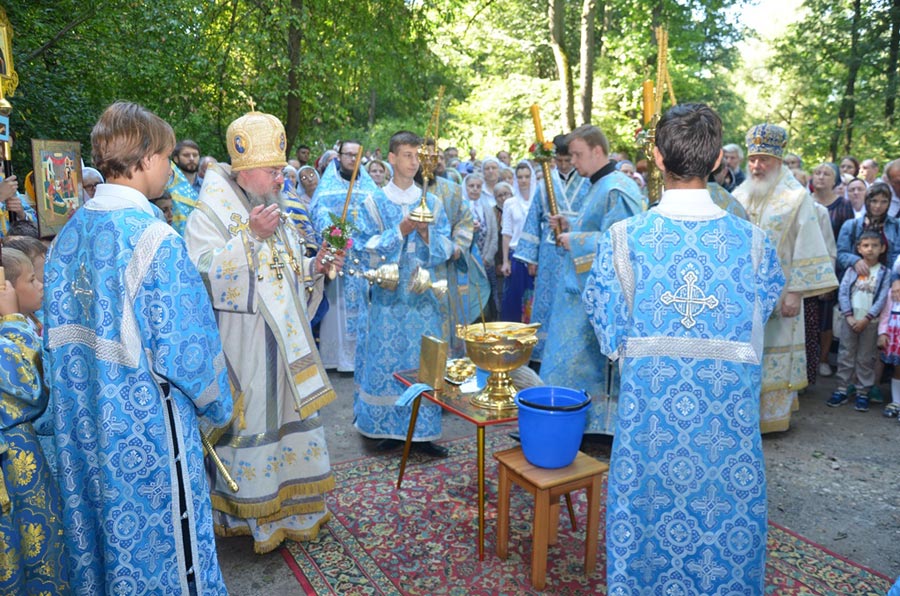 По окончании Литургии из храма прошел крестный ход на святой источник, где было совершено малое освящение воды. После окончания богослужения Высокопреосвященнейший Владыка поздравил гостей и жителей города с торжественным событием и обратился к богомольцам с архипастырским словом.