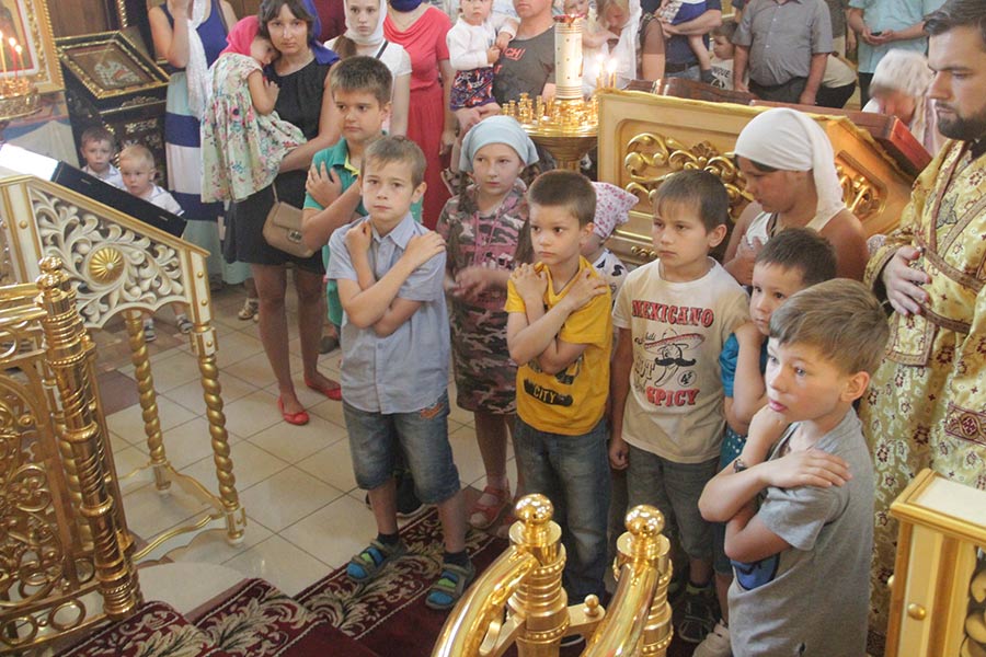 По отпусте литургии был совершен благодарственный молебен в завершении которого, вознеся молитву Господу Богу, владыка обратился к богомольцам с проповедью. Архипастырь поздравил настоятеля храма протоиерея Алексия Пелевина с тридцатипятилетием со дня рождения и преподнес юбиляру святую просфору. Завершилось богослужение многолетием.