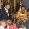 Так же ребят и их родителей поздравил глава администрации района Даниил Михайлович Аганичев. Всем присутствующим были вручены иконки Преподобного Сергия Радонежского, покровителя учеников.