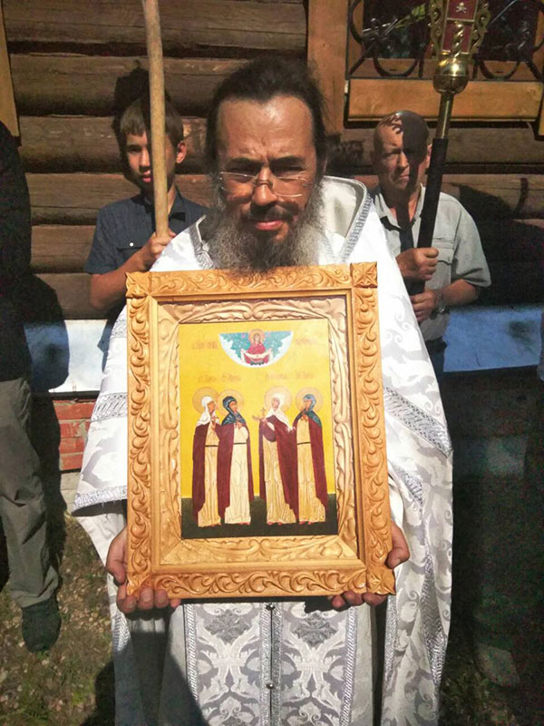 По отпусте литургии состоялся праздничный крестный ход вокруг храма в завершении которого, вознеся молитву святым мученицам, владыка обратился к богомольцам с проповедью.