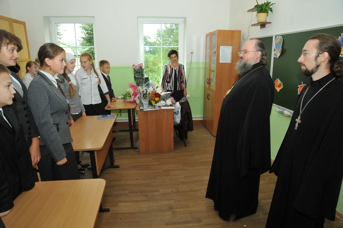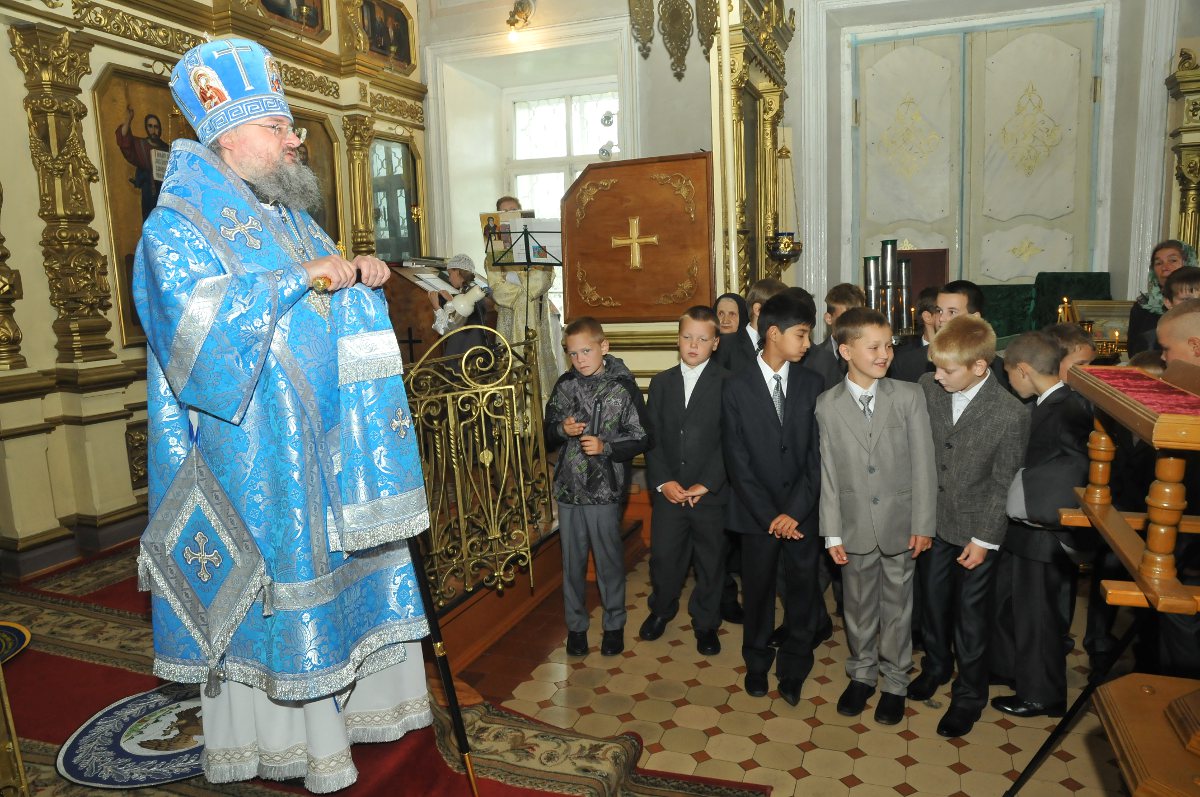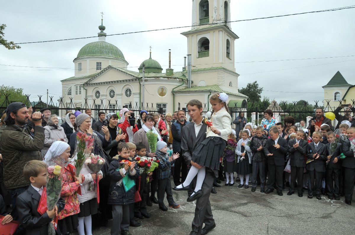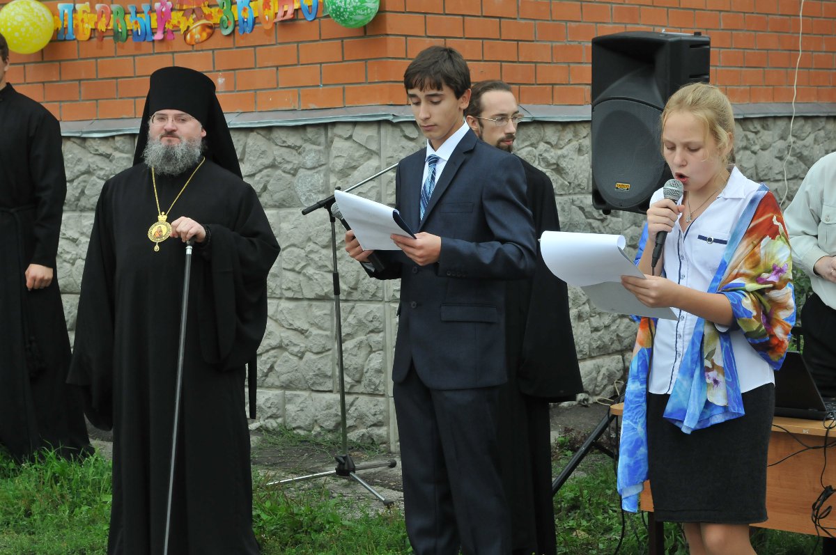 Традиционный первый звонок возвестил о начале первого урока в новом учебном году на который учащиеся 11 класса проводили первоклассников. Линейка закончилась общей фотографией. Владыка Никита осмотрел кабинеты гимназии, посетил классные часы, пообщался с гимназистами, преподавателями и родителями школьников. Праздничный день закончился чаепитием для учащихся, родителей и учителей.