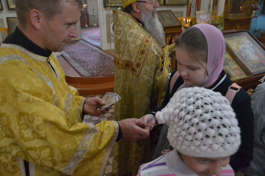 Настоятель протоиерей Алексий Жиганов окропил ребят и их наставников святой водой и сказал напутственное слово, поздравил учеников с началом учебного года, пожелал ребятам быть внимательными к учебе, трудолюбивыми, послушными своим родителям и педагогам, призвал на школьников и учителей Божие благословение, благословил на успешное обучение иконками.