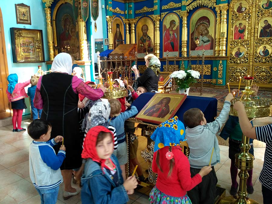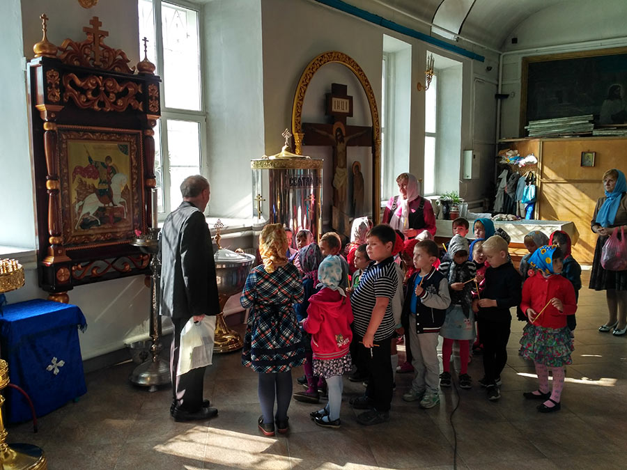 13 сентября в храме в честь Смоленской иконы Божией Матери в г. Сухиничи прошла экскурсия для воспитанников детского сада № 162. Заслуженный учитель России Панов Сергей Алексеевич рассказал детям о первых шагах в храме, об иконах храма.