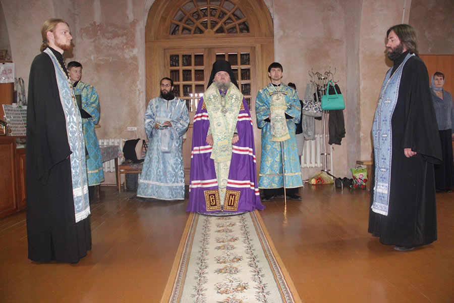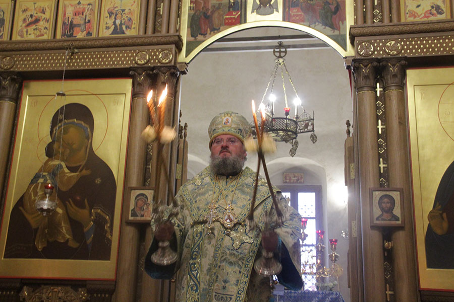 20 сентября накануне двунадесятого праздника Рождества Пресвятой Богородицы епископ Козельский и Людиновский Никита в сослужении клириков храма совершил всенощное бдение в Успенском кафедральном соборе города Козельска.