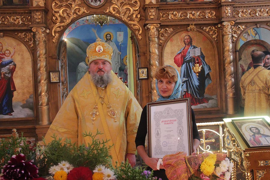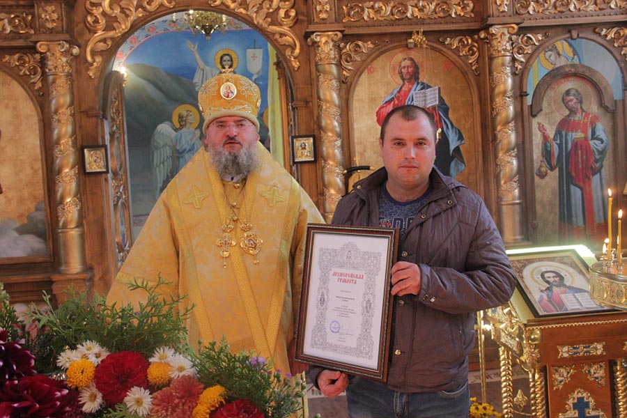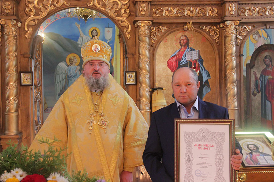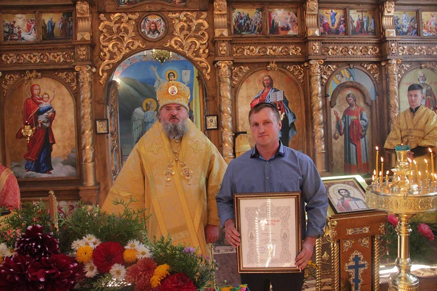По отпусте литургии владыка обратился к богомольцам с архипастырским словом. Во внимание к усердным трудам во славу святой Церкви и в связи с пятнадцатилетием иерейской хиротонии настоятель храма протоиерей Александр Карпов был удостоен медали Калужской Митрополии преподобного Тихона Калужского. Также медали преподобного Тихона были удостоены жители села принявшие участие в возведении часовни в честь Страстной иконы Пресвятой Богородицы на сельском кладбище: генеральный директор ЗАО Хвастовичская ПМК-9 Махоткин Сергей Николаевич – инициатор и спонсор строительства; Юферева Марина Николаевна – иконописец, расписавшая часовню. Архиерейские грамоты были вручены: Ступину Михаилу Николаевичу, Пиляеву Михаилу Алексеевичу, Глазову Ивану Владимировичу, Дубинкину Виктору Ивановичу, Самухину Александру Михайловичу, Лопатиной Ольге Александровне.