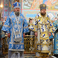 После сугубой ектении была вознесена молитва о мире на Украине. По окончании богослужения Преосвященные архиереи совершили молебен у ковчега с частицей Пояса Пресвятой Богородицы.