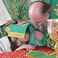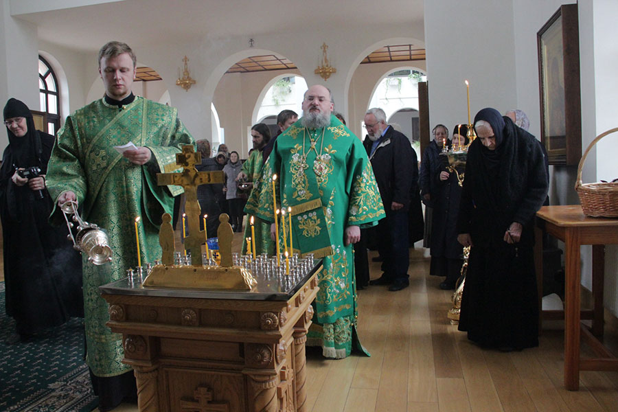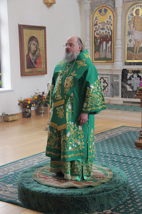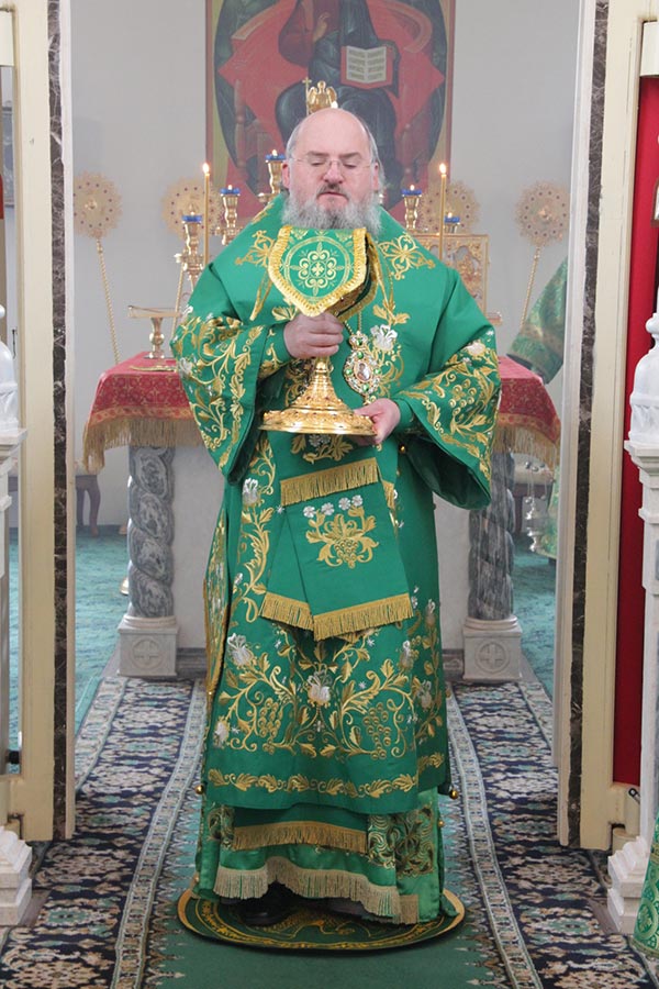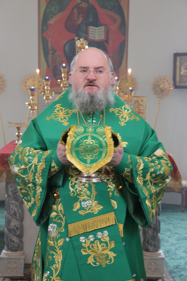 По отпусте литургии священнослужители совершили поклонение Животворящему Кресту Господню, а затем владыка обратился к богомольцам с архипастырским словом.