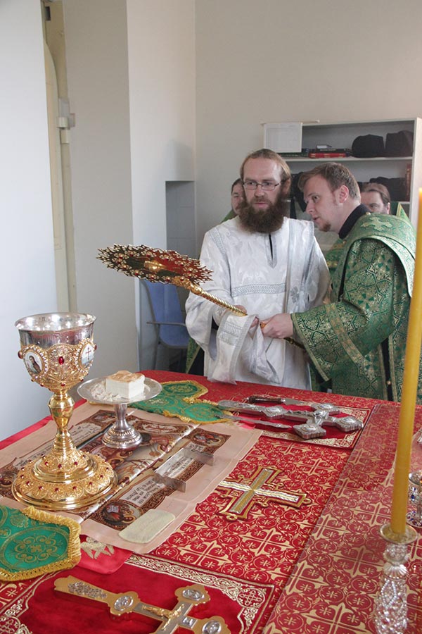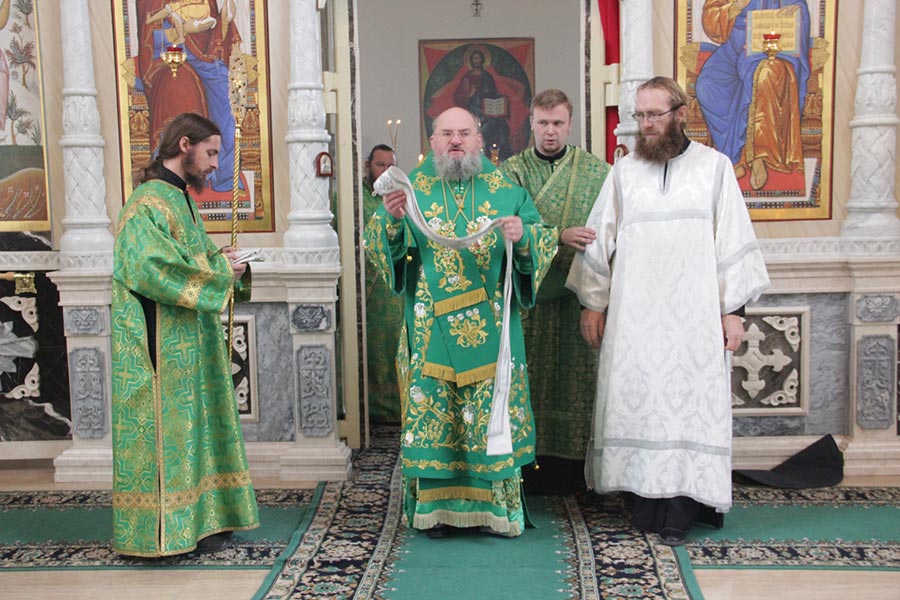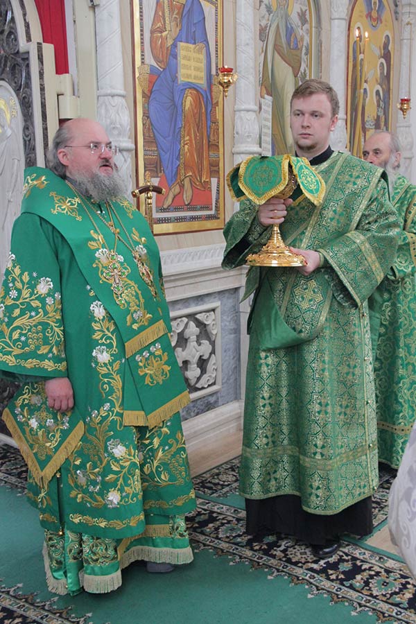 Его Преосвященству сослужили настоятель монастыря — игумен Михаил (Семенов) и братия обители в священном сане. В сан диакона к Свято-Успенскому кафедральному собору города Козельска был рукоположен студент пятого курса Калужской духовной семинарии Димитрий Лутков.