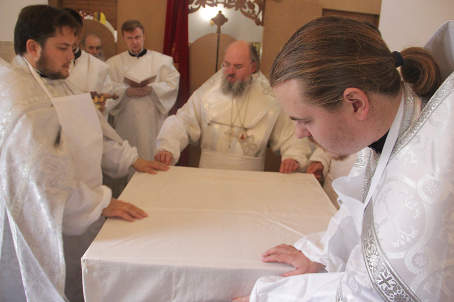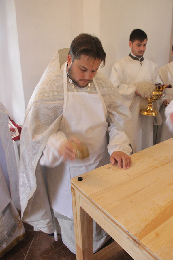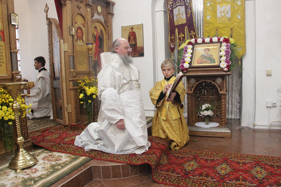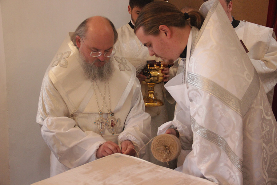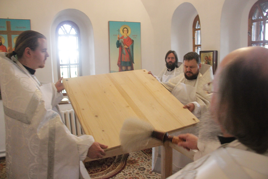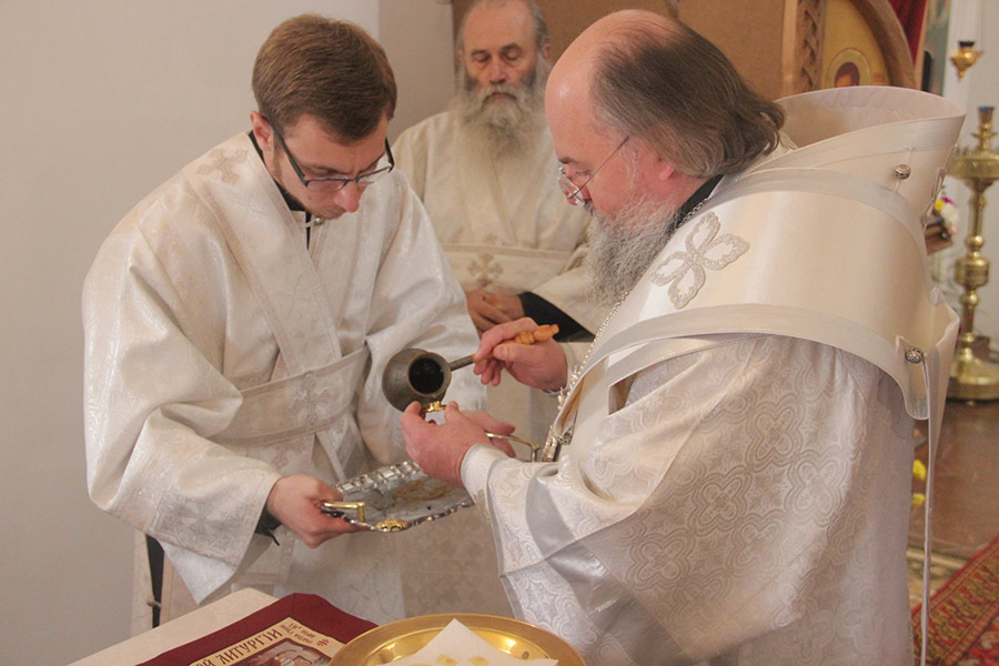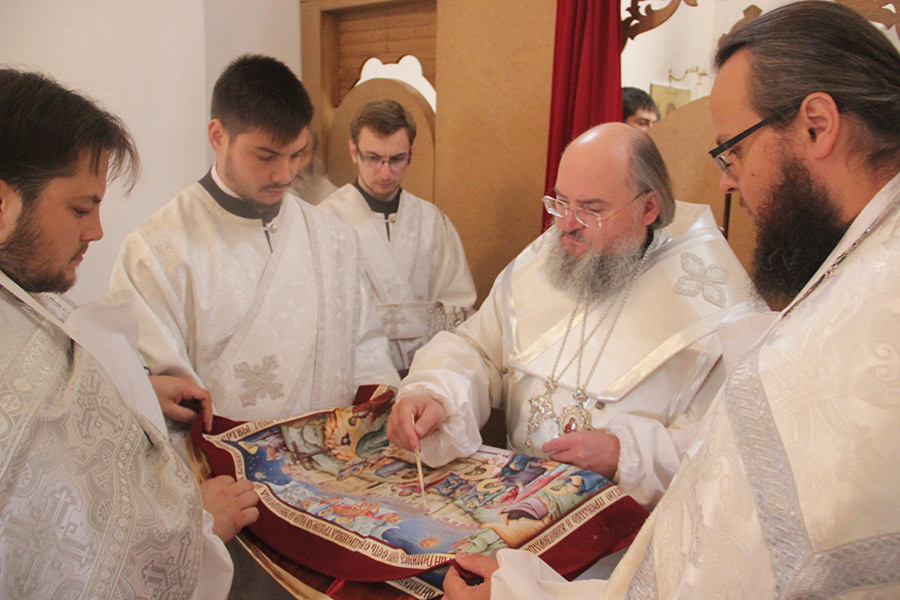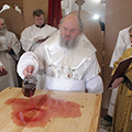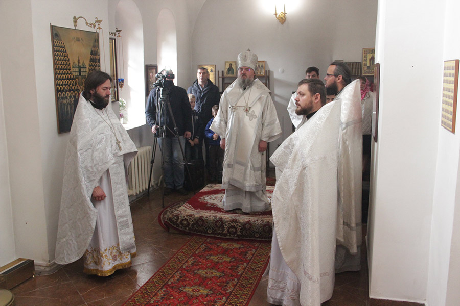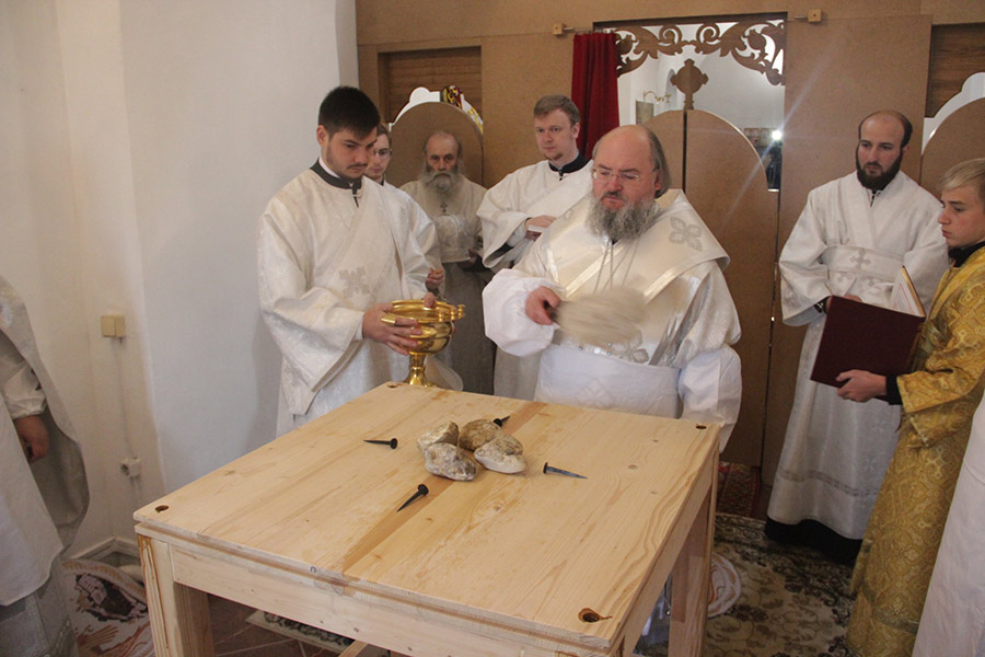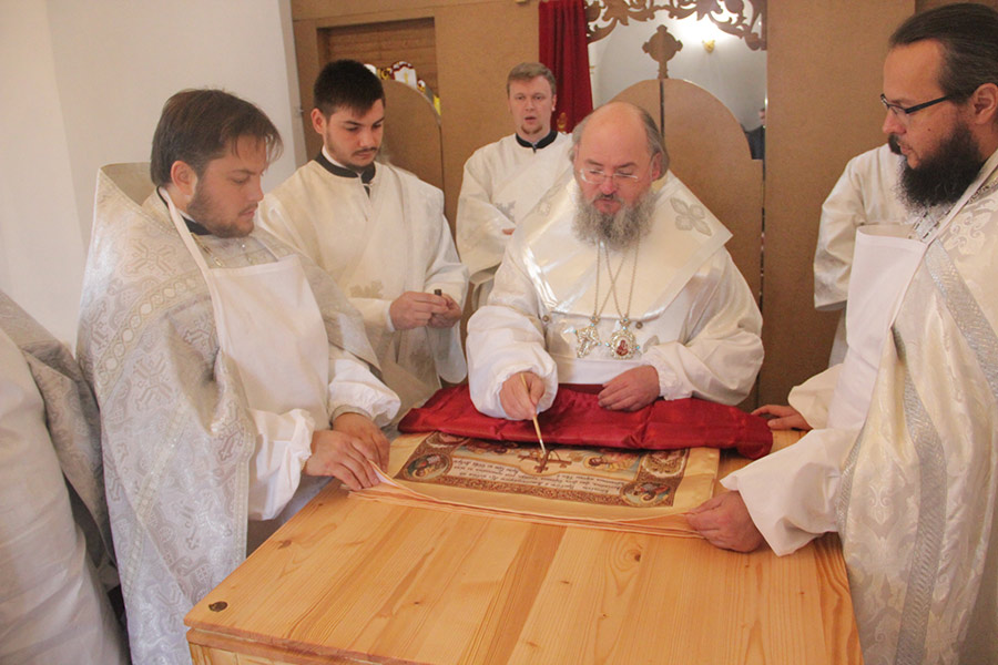По освящении была совершена Божественная литургия. Архипастырю сослужили: протоиерей Антоний Хатунцев, иеромонах Паисий (Курмаз), иерей Антоний Демин – настоятель храма, иерей Виктор Носов, иерей Георгий Краснов, диакон Евгений Ковригин и диакон Евгений Васильев. По отпусте литургии владыка обратился к богомольцам с архипастырским словом.