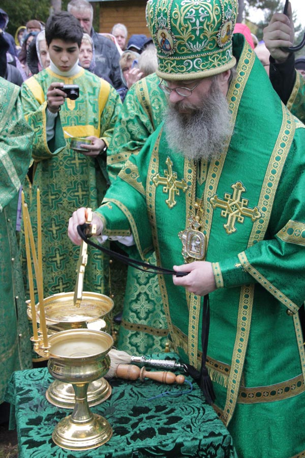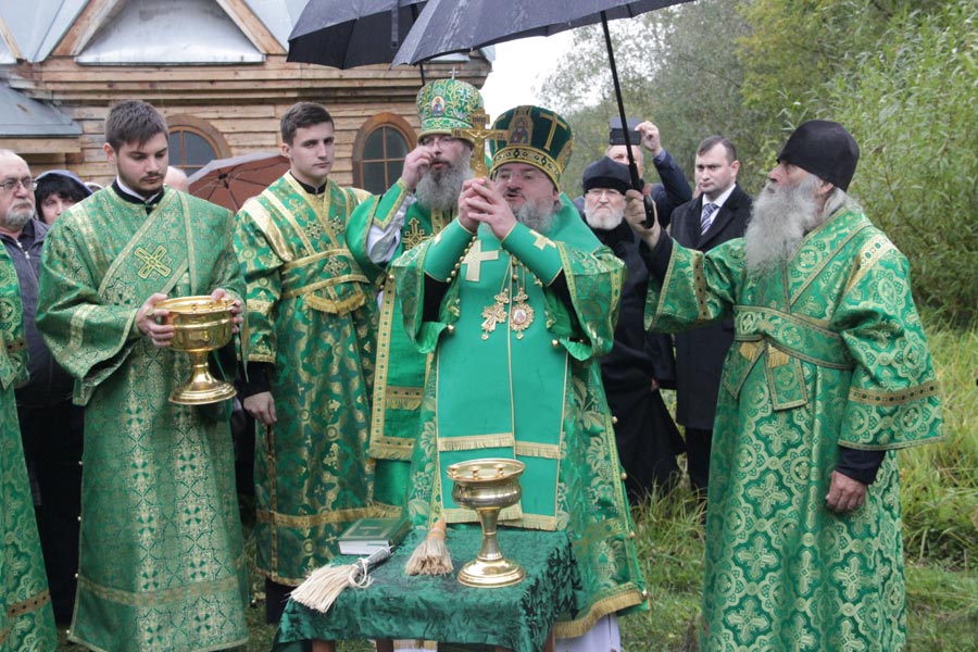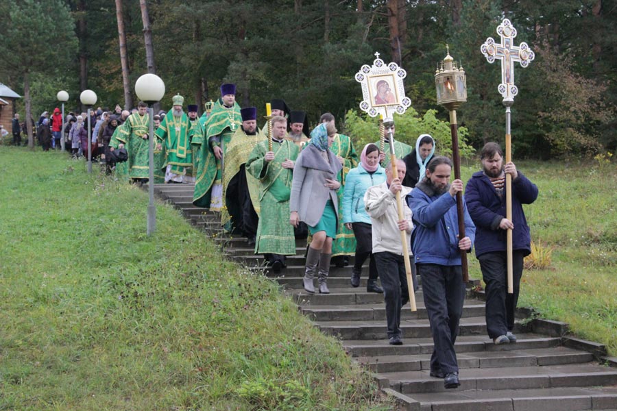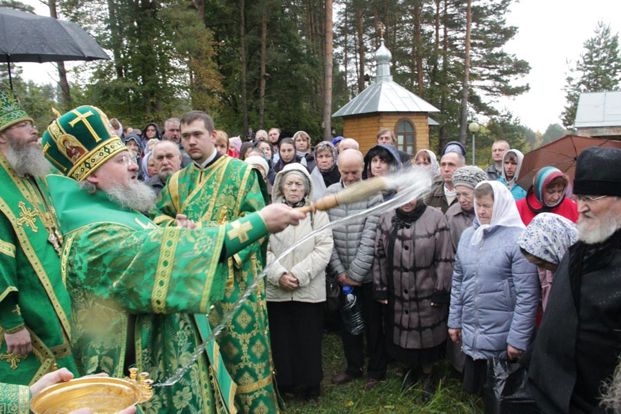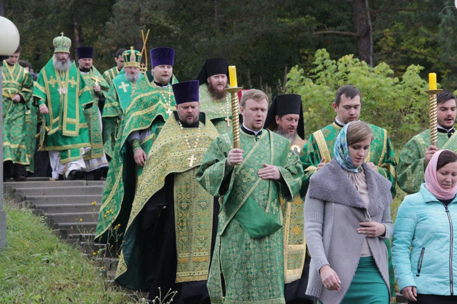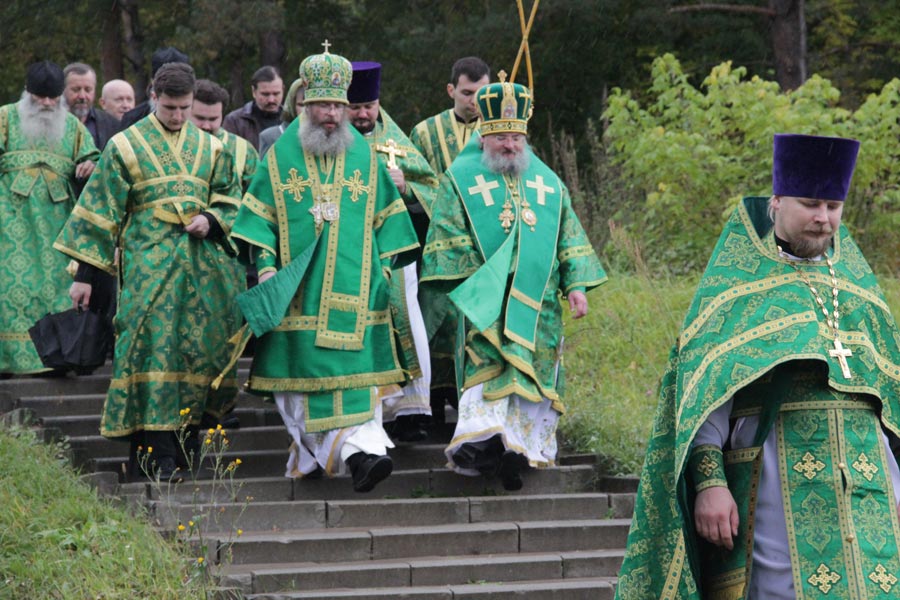 По отпусте литургии священнослужители возглавили крестный ход на святой источник где было совершено водоосвящение. В завершении богослужения архипастыри поздравили богомольцев с престольным праздником обители.