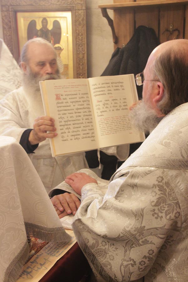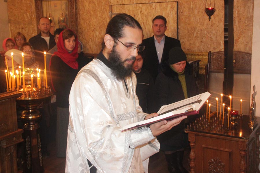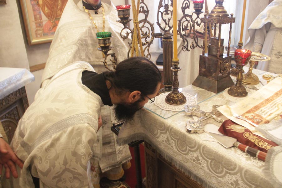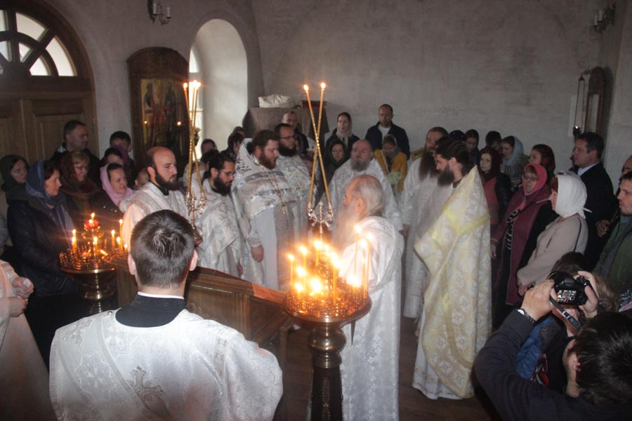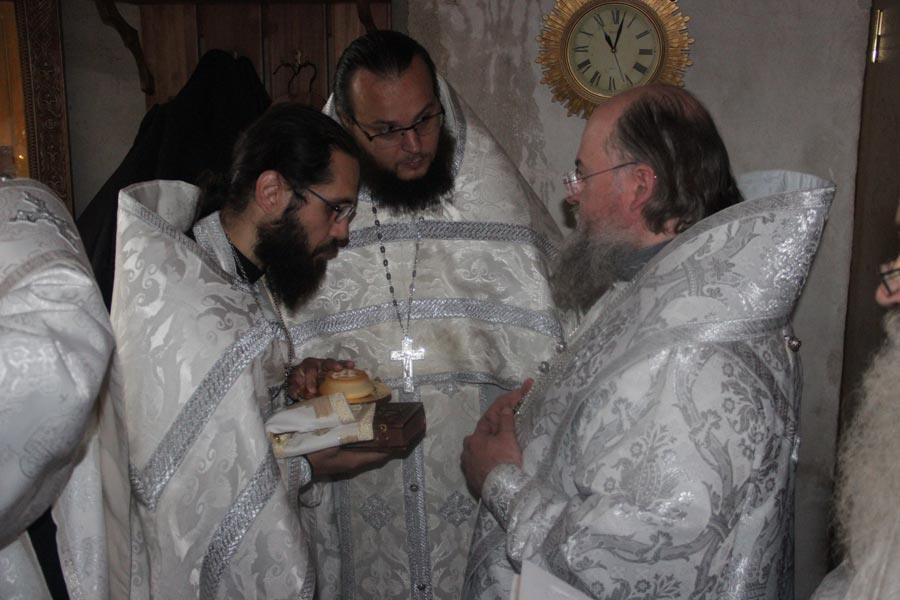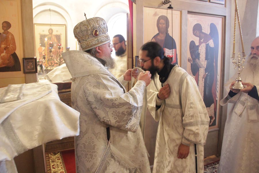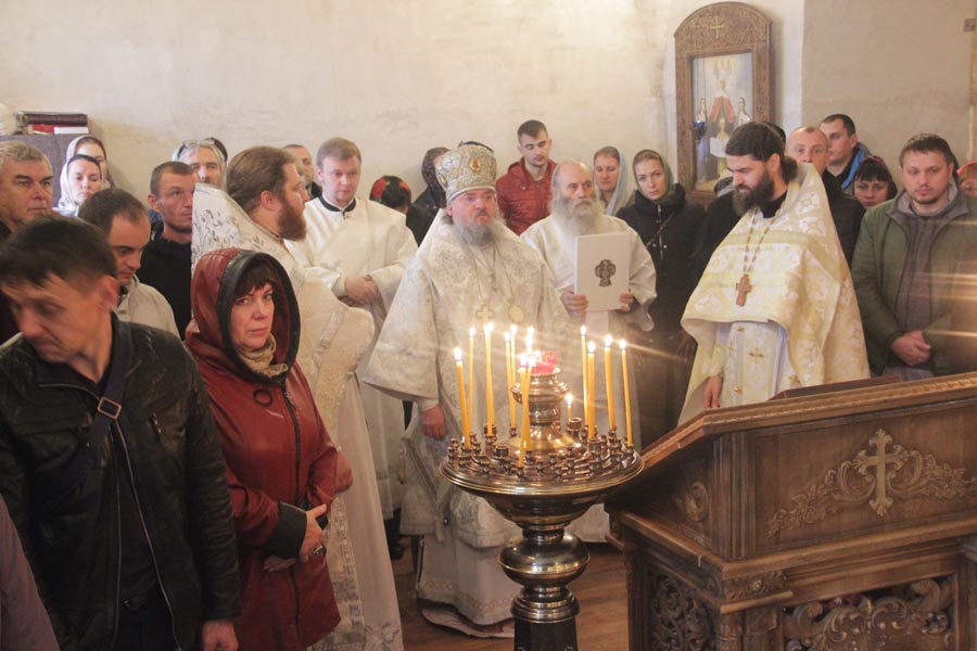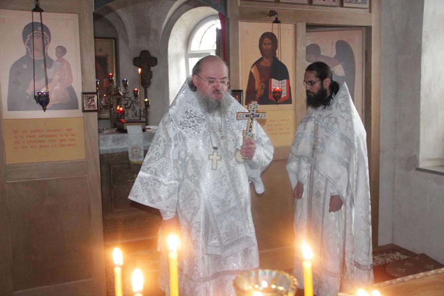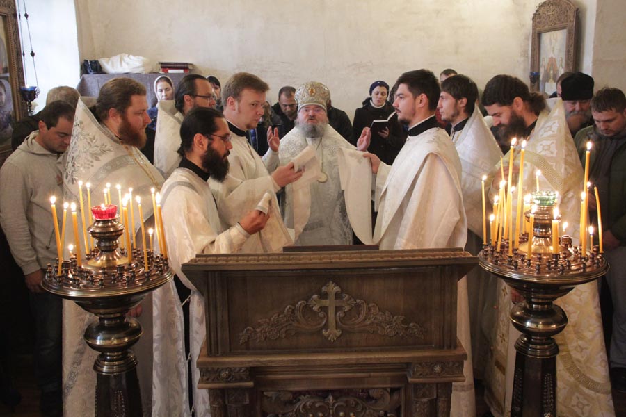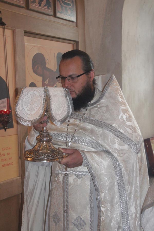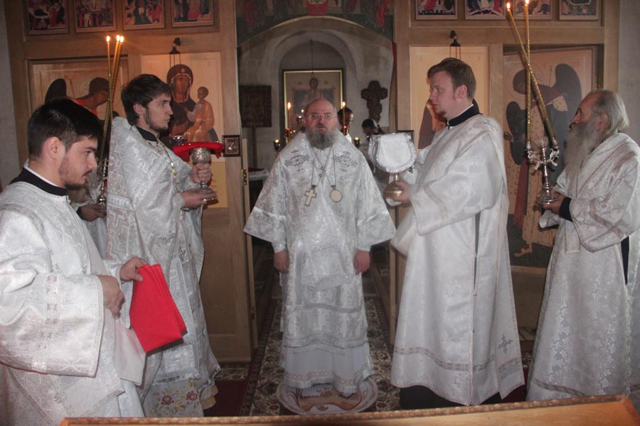 Архипастырю сослужили: иеромонах Паисий (Курмаз) и. о. настоятеля храма, иерей Евгений Мягков, диакон Евгений Ковригин, диакон Евгений Васильев и клирики — гости из Московской епархии. В сан иерея к сему храму был рукоположен выпускник Калужской духовной семинарии диакон Максим Изопов.
