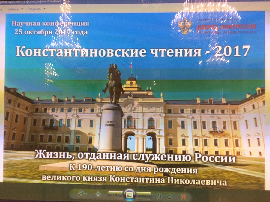 25 октября во дворце Конгрессов (Константиновском дворце), в Стрельне прошли 17-е Константиновские чтения, научно практическая конференция по изучению истории Константиновской ветви дома Романовых.