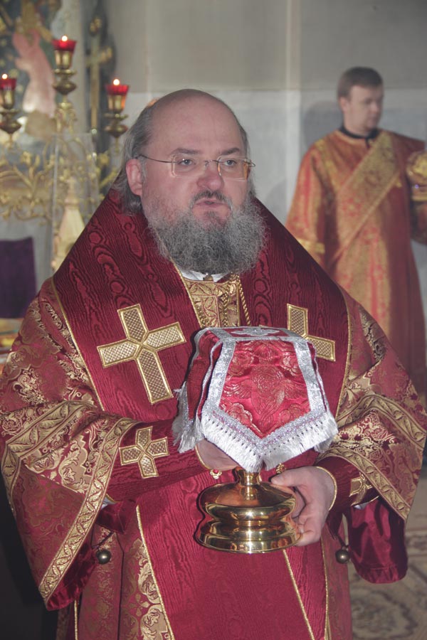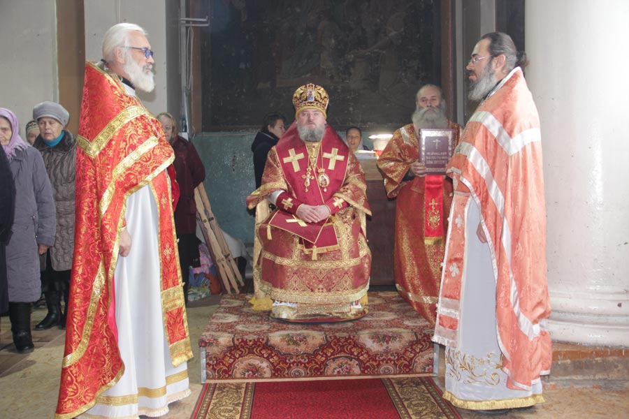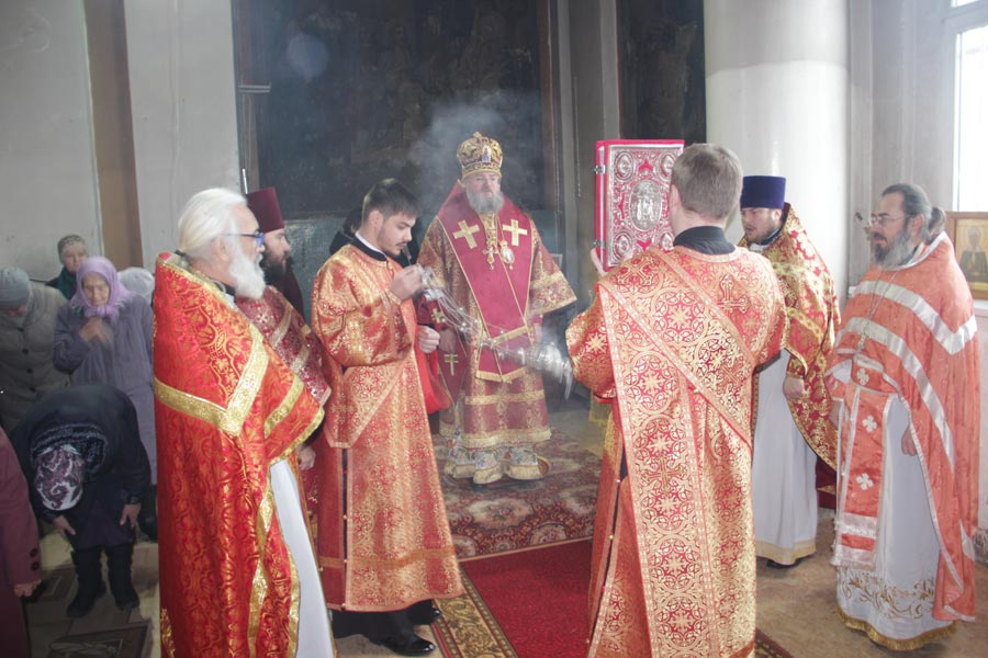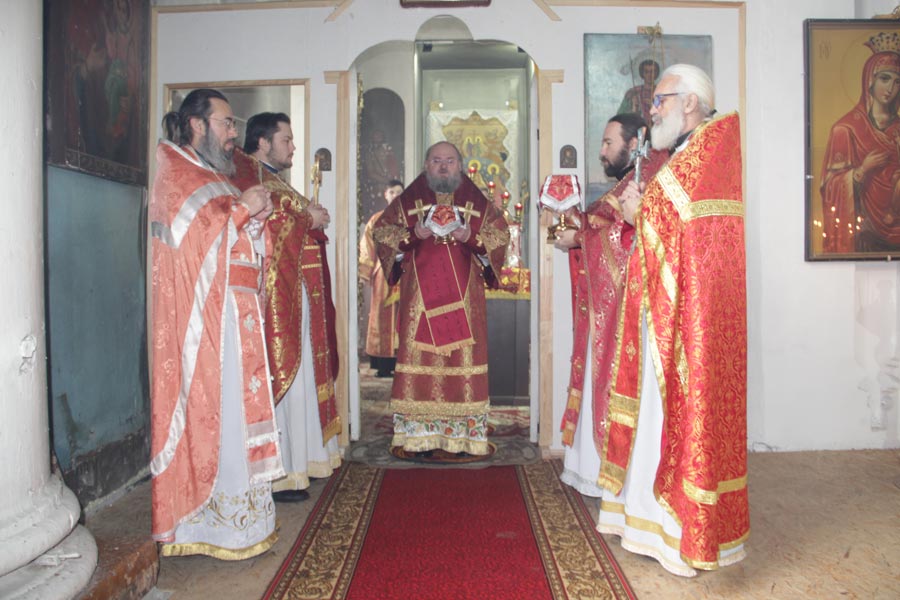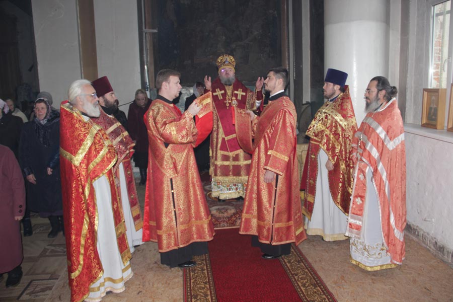 Архипастырю сослужили: настоятель храма, благочинный округа протоиерей Максим Садовников, протоиерей Антоний Хатунцев, иерей Алексий Сорокин, иерей Стахий Гайсин, диакон Евгений Ковригин и диакон Евгений Васильев.