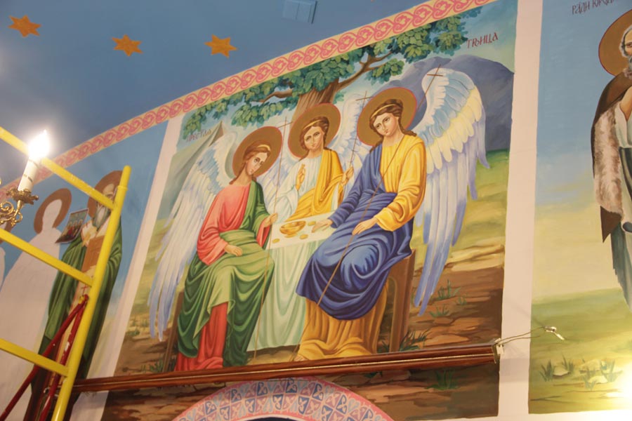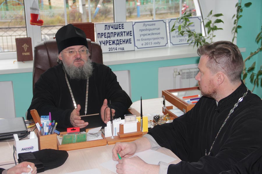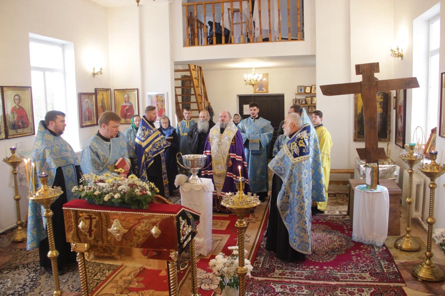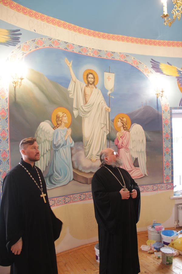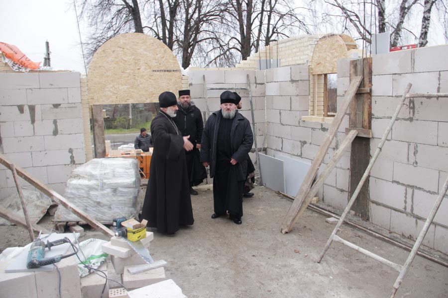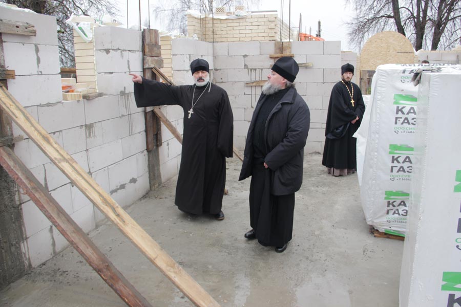 Затем владыка осмотрел строительство храма в честь иконы Божией Матери «Неупиваемая Чаша» в селе Теребень. Ответственный за строительство иерей Геннадий Сафиев познакомил архипастыря с ходом строительных работ.