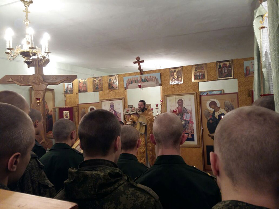 За богослужением молились протоиерей Владимир Бахаев, иерей Алексей Боков и военнослужащие срочной службы.