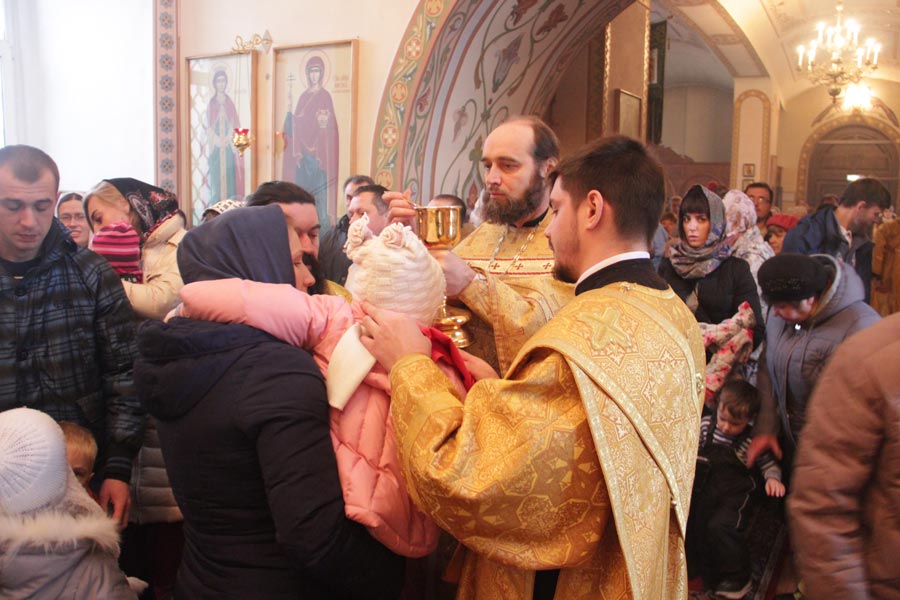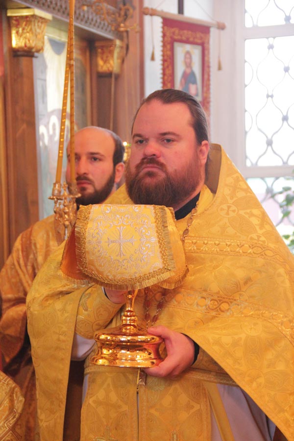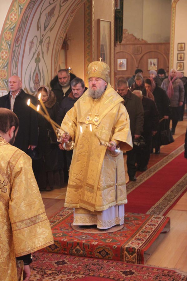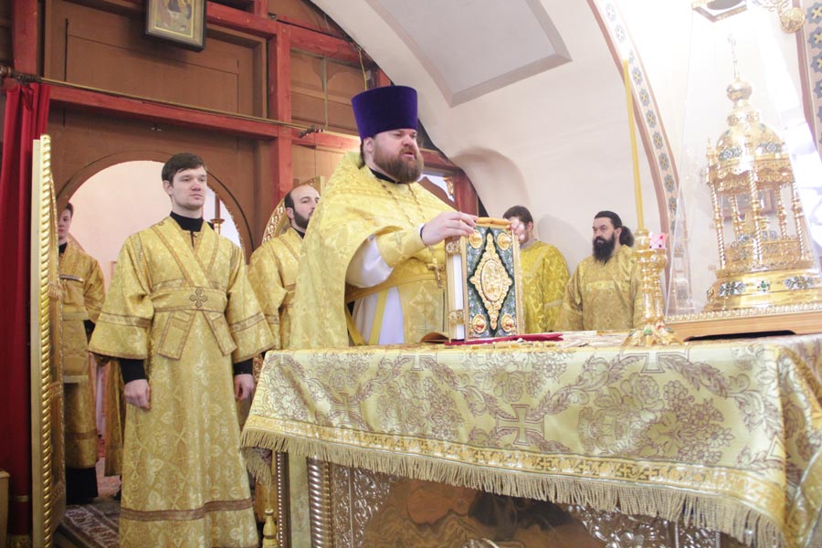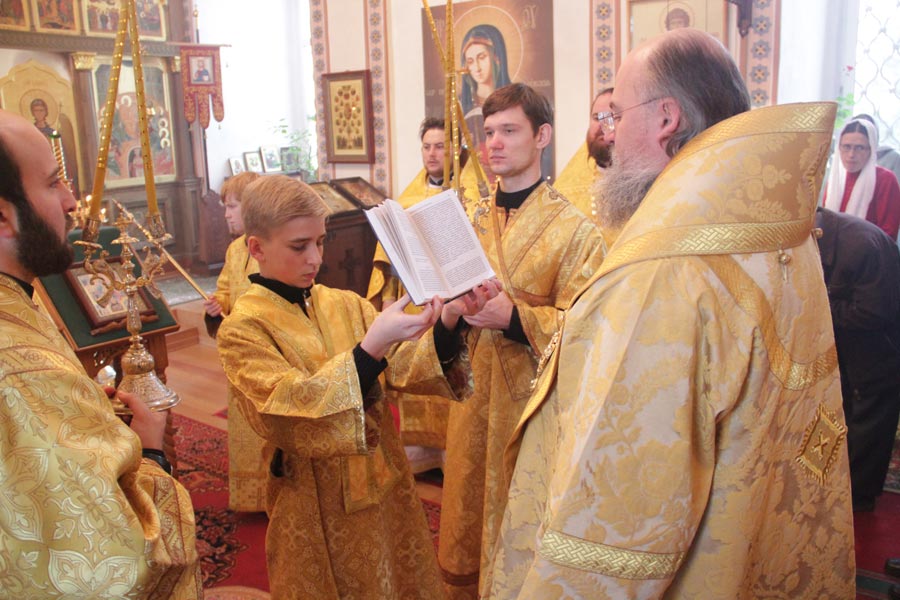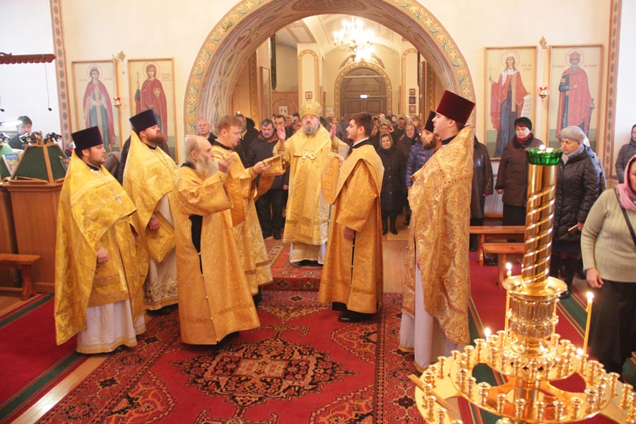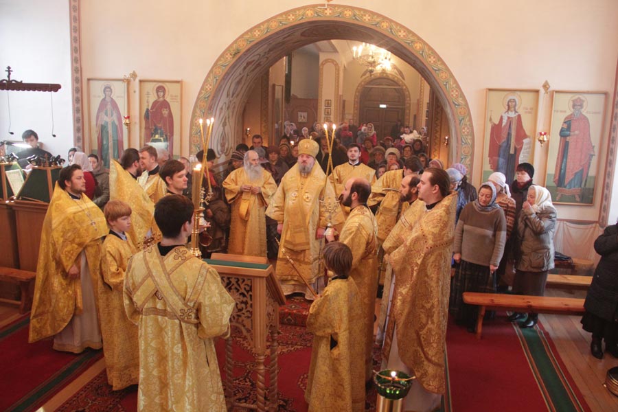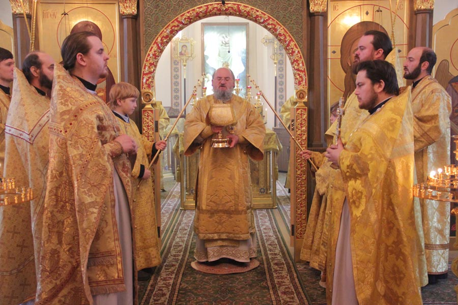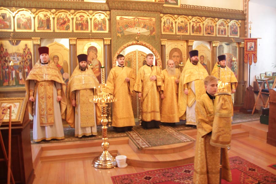 Его Преосвященству сослужили: настоятель храма протоиерей Сергий Сычев, протоиерей Дмитрий Сахаров, протоиерей Антоний Хатунцев, иерей Виктор Носов, диакон Евгений Ковригин, диакон Евгений Васильев и иеродиакон Виталий (Павленко).