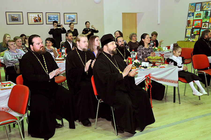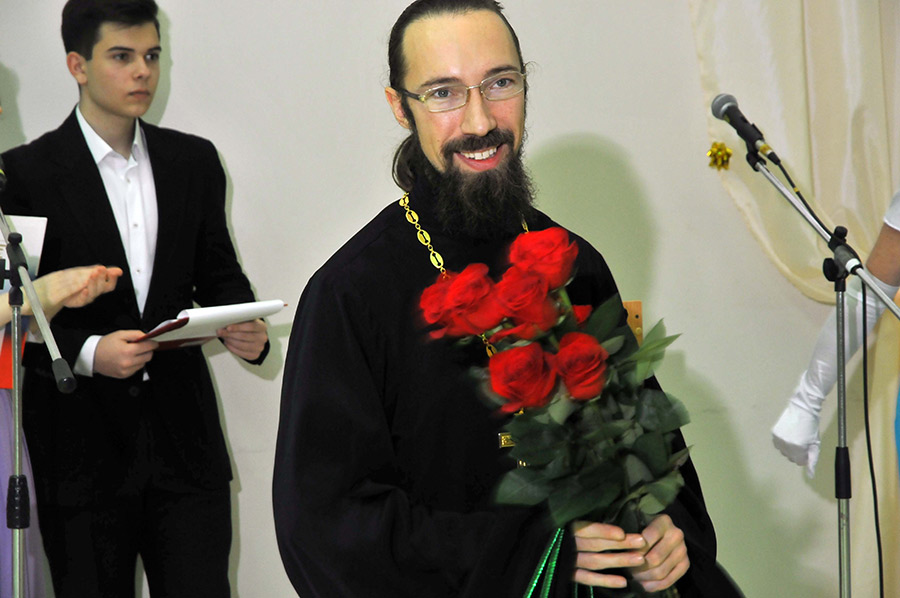 Директор гимназии иерей Антоний Лунин, поздравив собравшихся с юбилеем гимназии, вручил благодарственные грамоты ранее работавшим в гимназии учителям.
