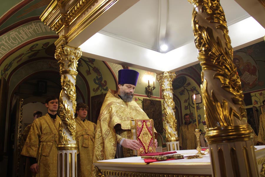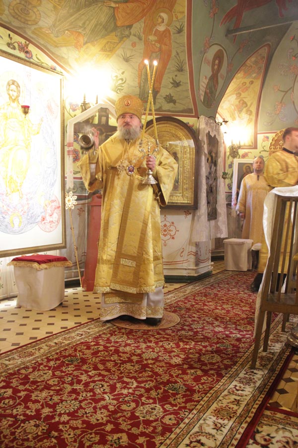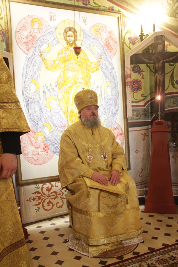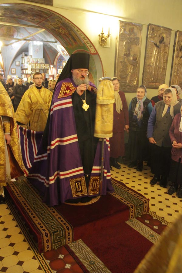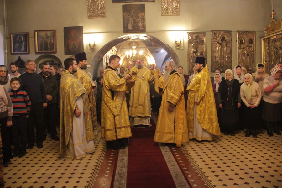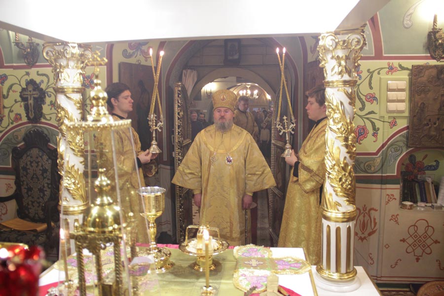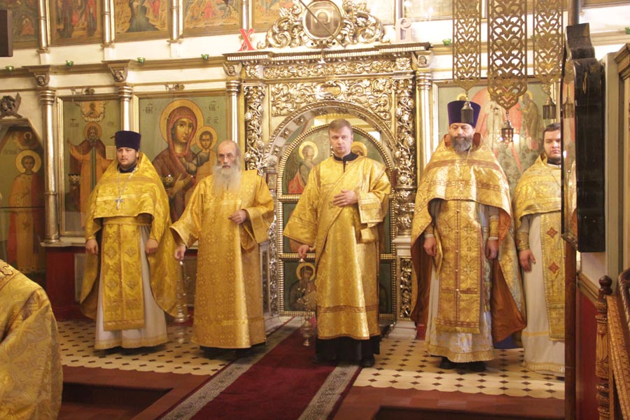 Архипастырю сослужили: настоятель храма протоиерей Сергий Демьянов, протоиерей Антоний Хатунцев, иерей Ярослав Чайкин, диакон Евгений Ковригин и иеродиакон Виталий (Павленко). По отпусте литургии владыка обратился к богомольцам с проповедью.